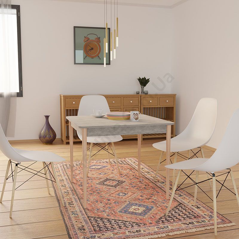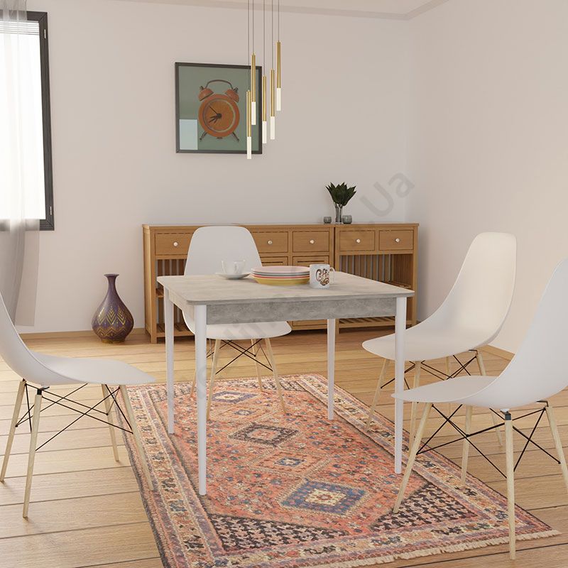 Квадратний нерозкладний обідній стіл на чотирьох ніжках.