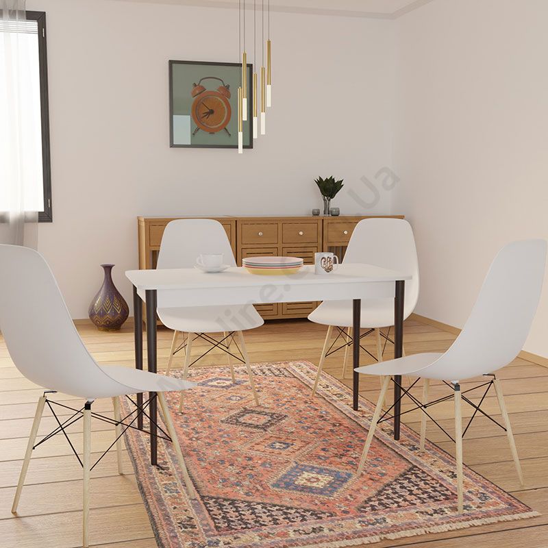 Прямокутний нерозкладний обідній стіл на чотирьох ніжках.