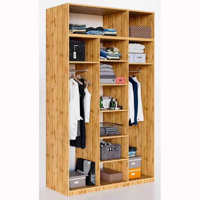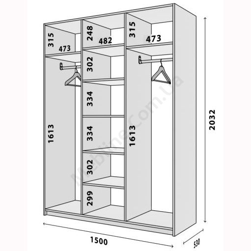 За бічними дверцятами по штанзі для одягу та верхній полиці.