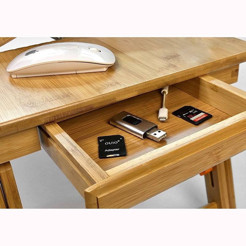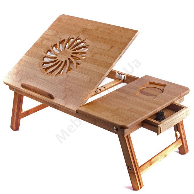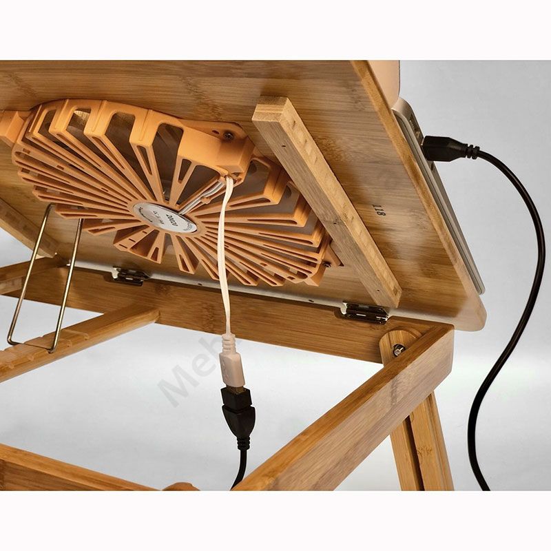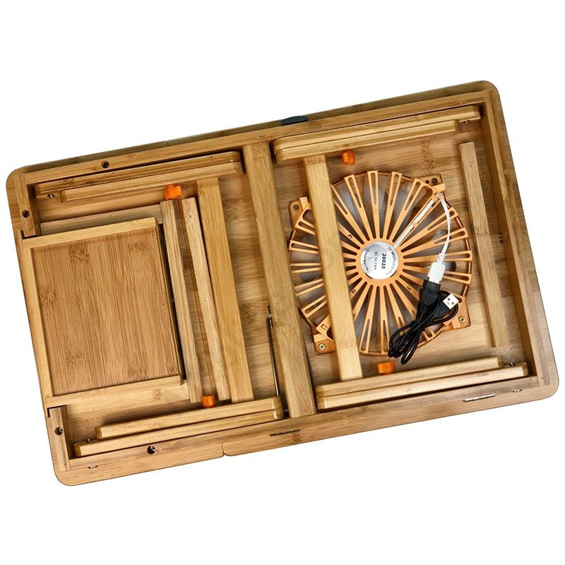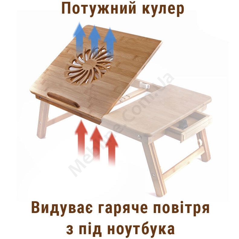 Бамбуковий столик для ноутбука з вентилятором, підставкою і скринькою.