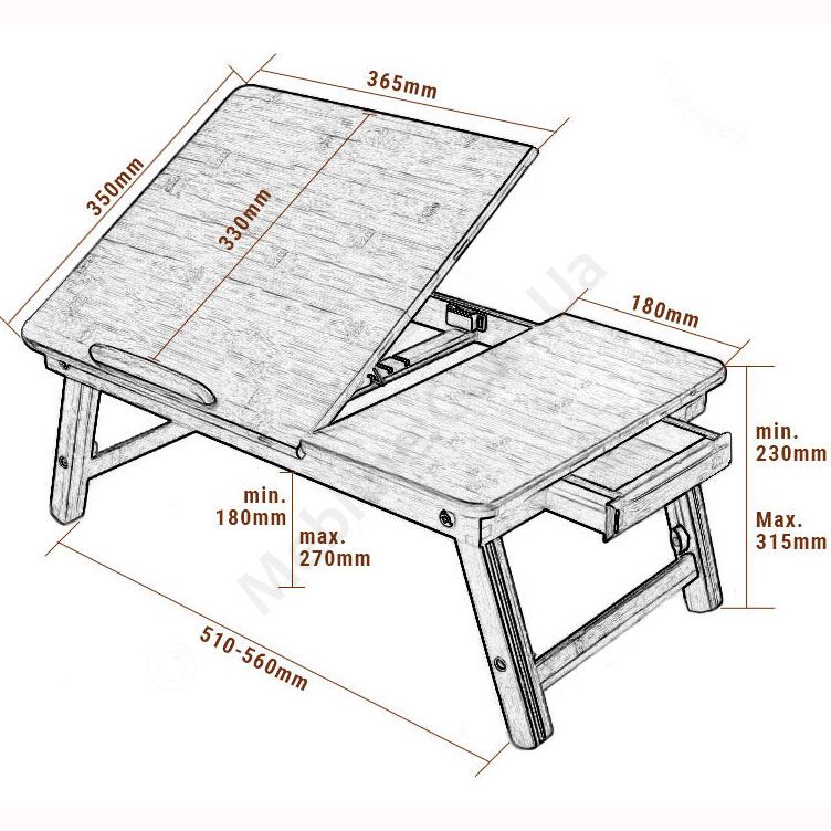 - Стільниця фіксується у чотирьох положеннях нахилу та горизонтальному.