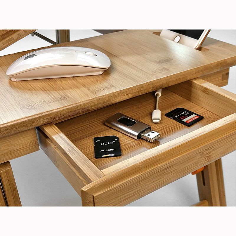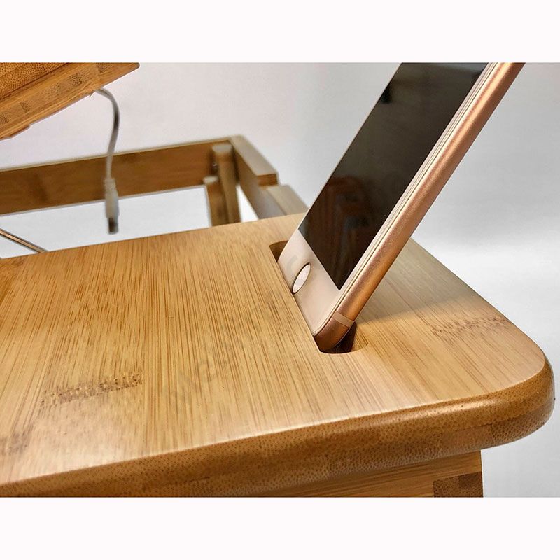 Бамбуковий столик для ноутбука з вентилятором, підставкою і скринькою.