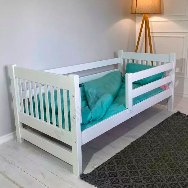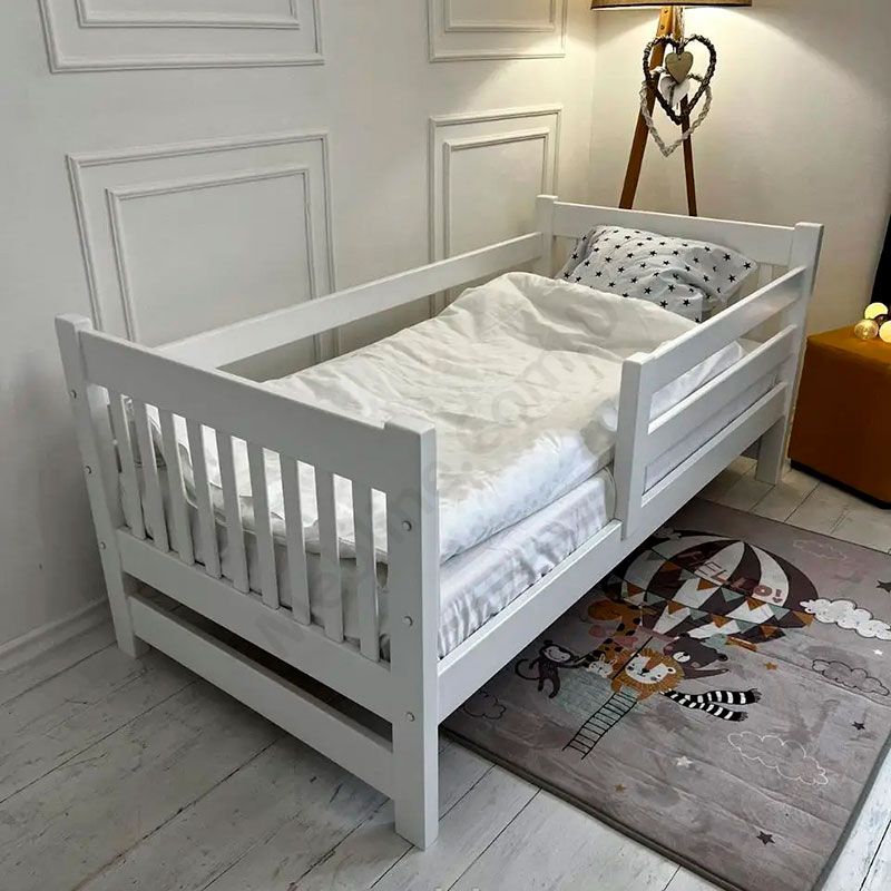Дитяче ліжко-софа з натурального дерева із захисним бортиком.