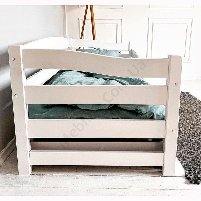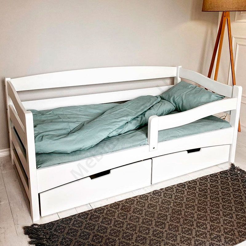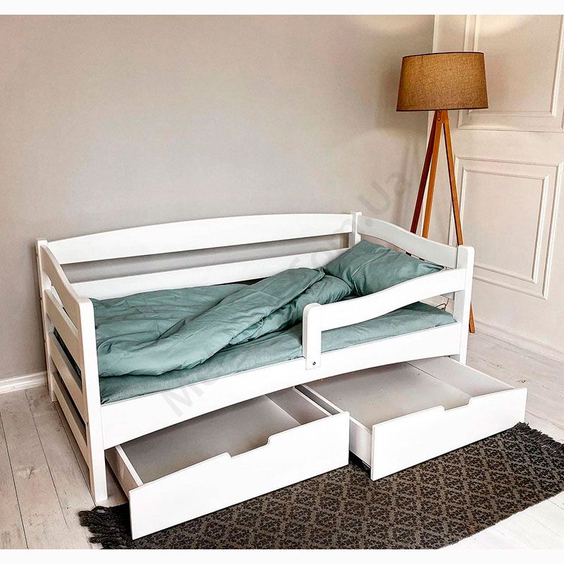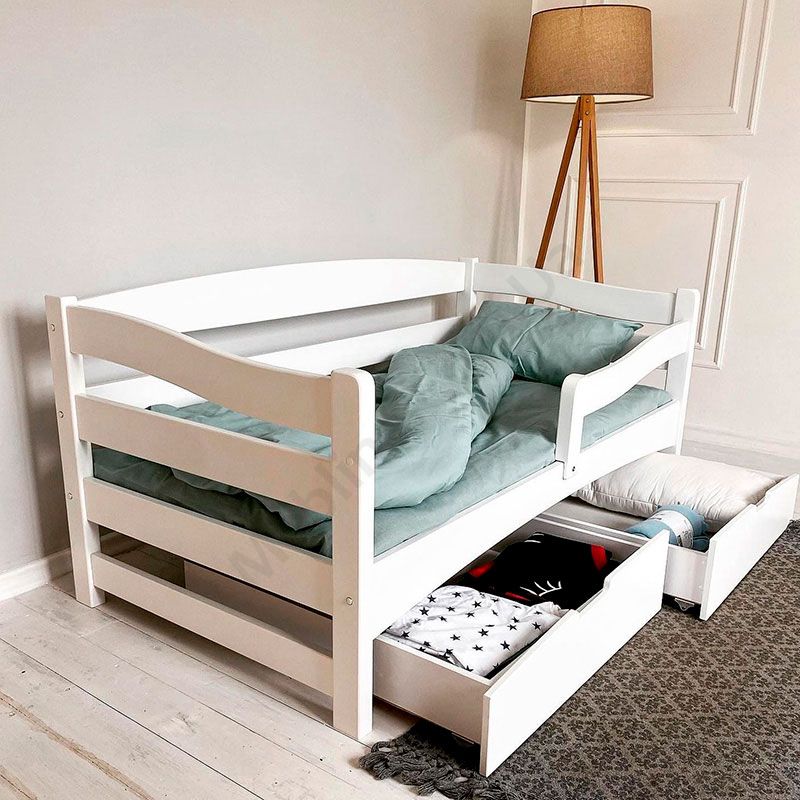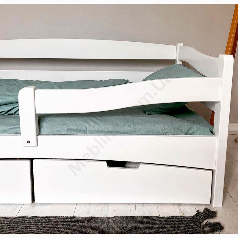 Дитяче ліжко-софа з натурального дерева із захисним бортиком та шухлядами.