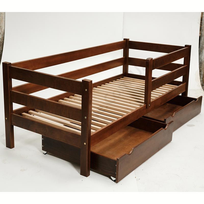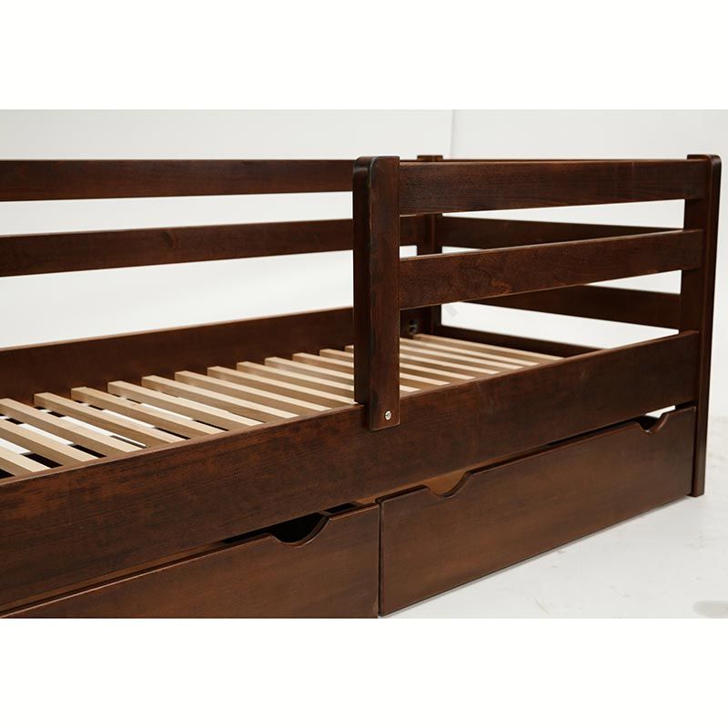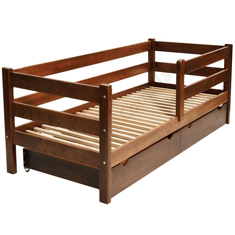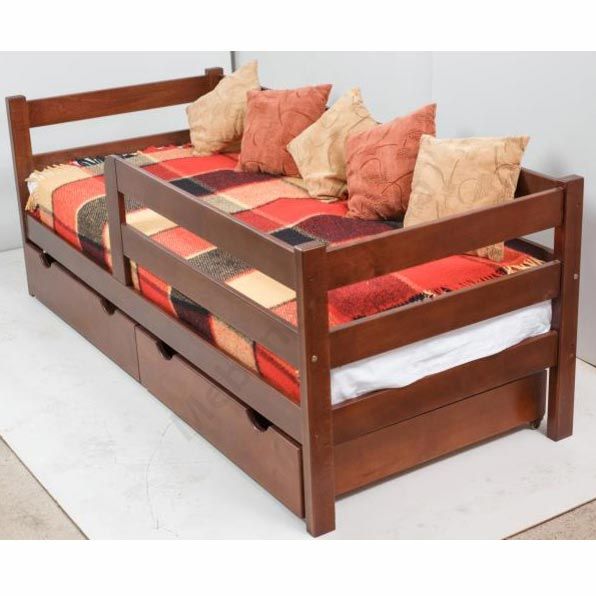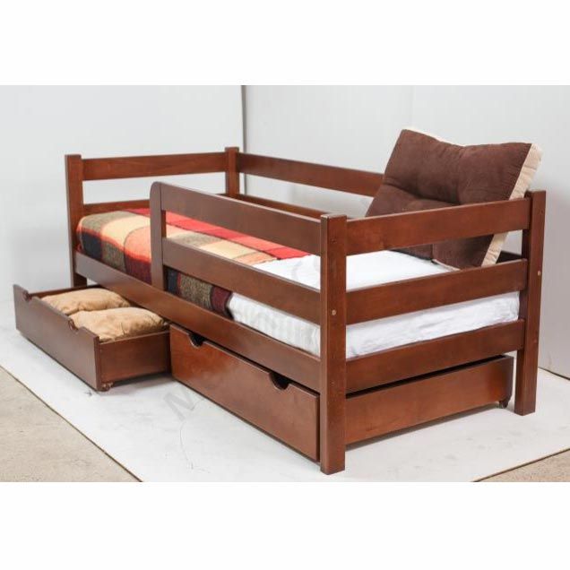 Дитяче ліжко-софа з натурального дерева із захисним бортиком та шухлядами.