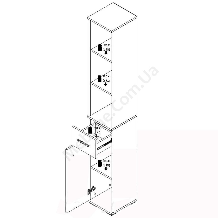 Пенал з відкритими полицями, шухлядою та дверцятами.