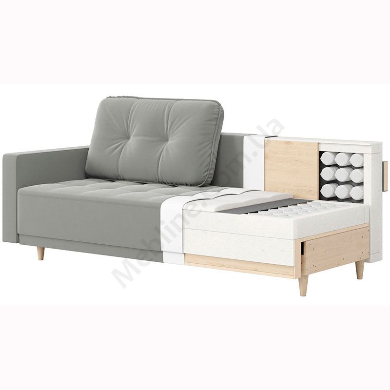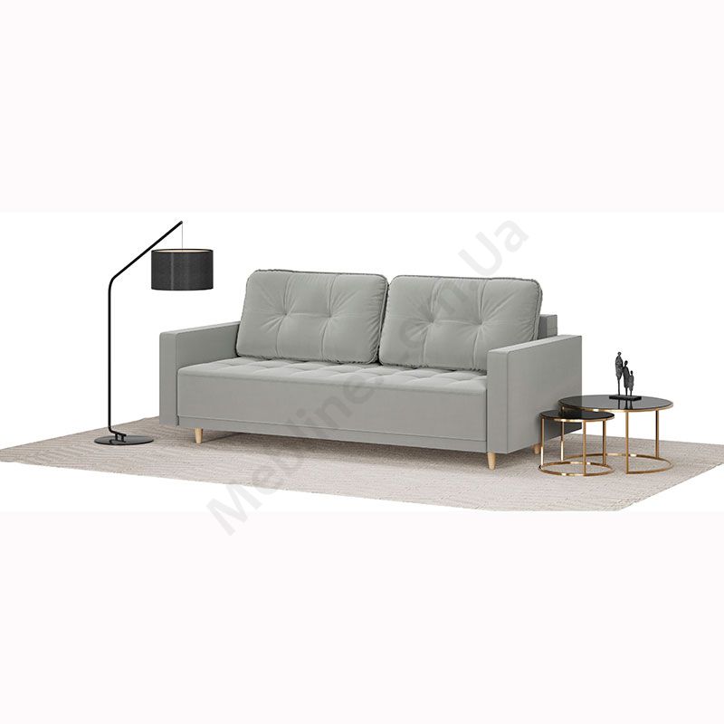 Розкладний диван на ніжках з м’якими підлокітниками.