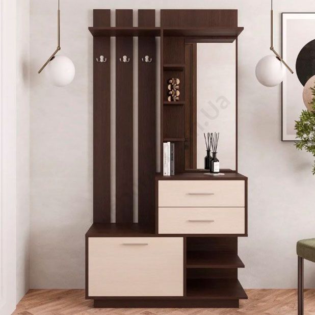 Передпокій з вішаком, дзеркалом, тумбою та дзеркалом.