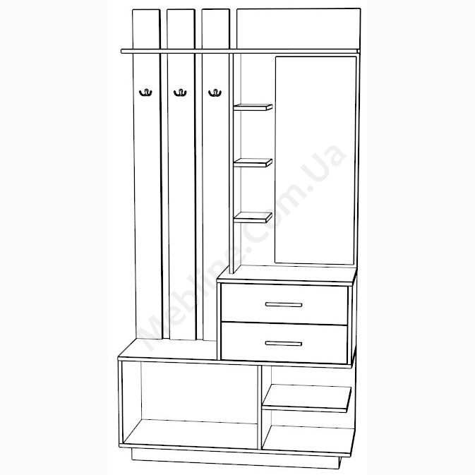 - Вішак з гачками та полицею для головних уборів.