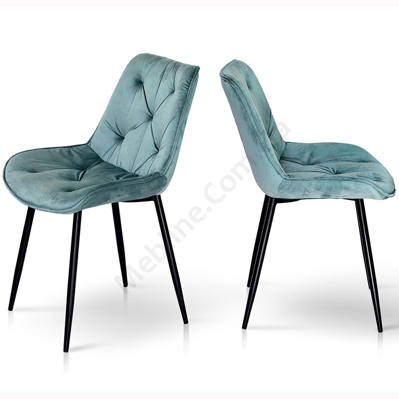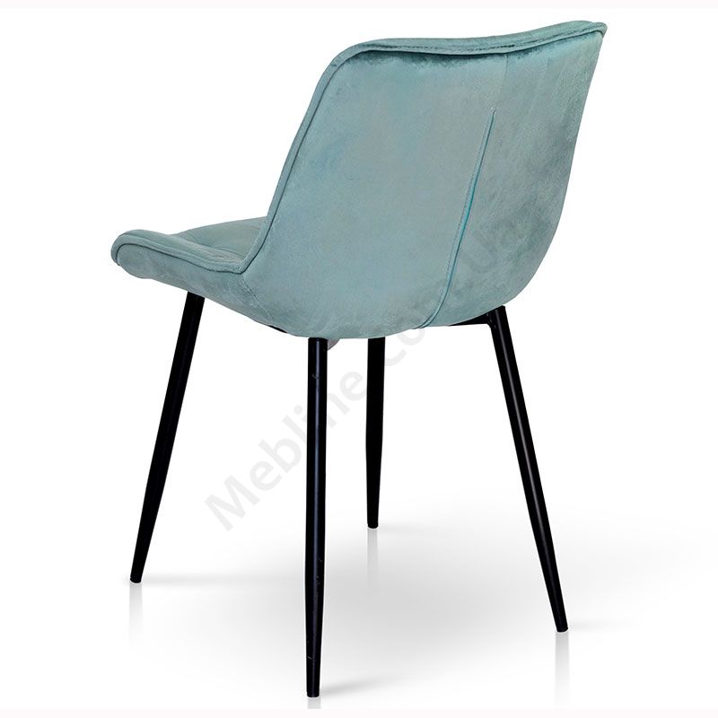 М’який стілець без підлокітників на металевих ніжках з оббивкою із велюру.