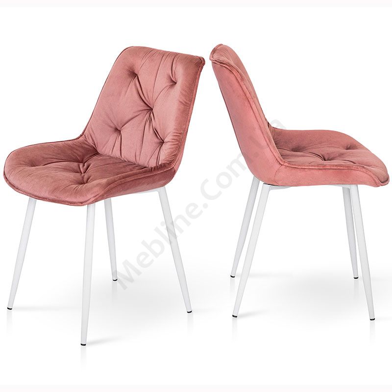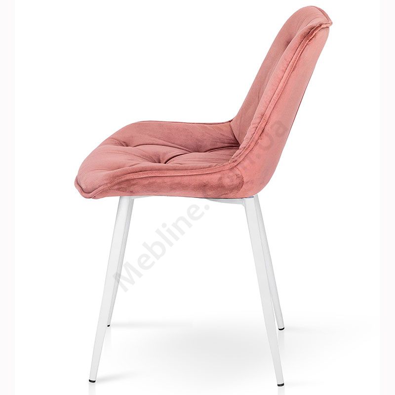 М’який стілець без підлокітників на металевих ніжках з оббивкою із велюру.