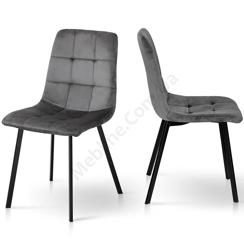 М’який стілець без підлокітників на металевих ніжках з оббивкою із велюру.