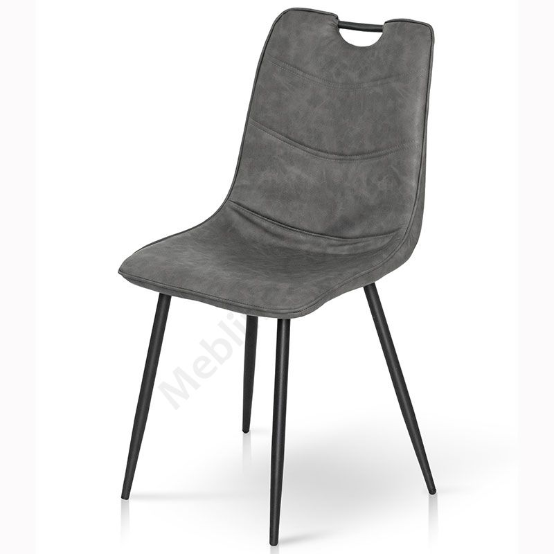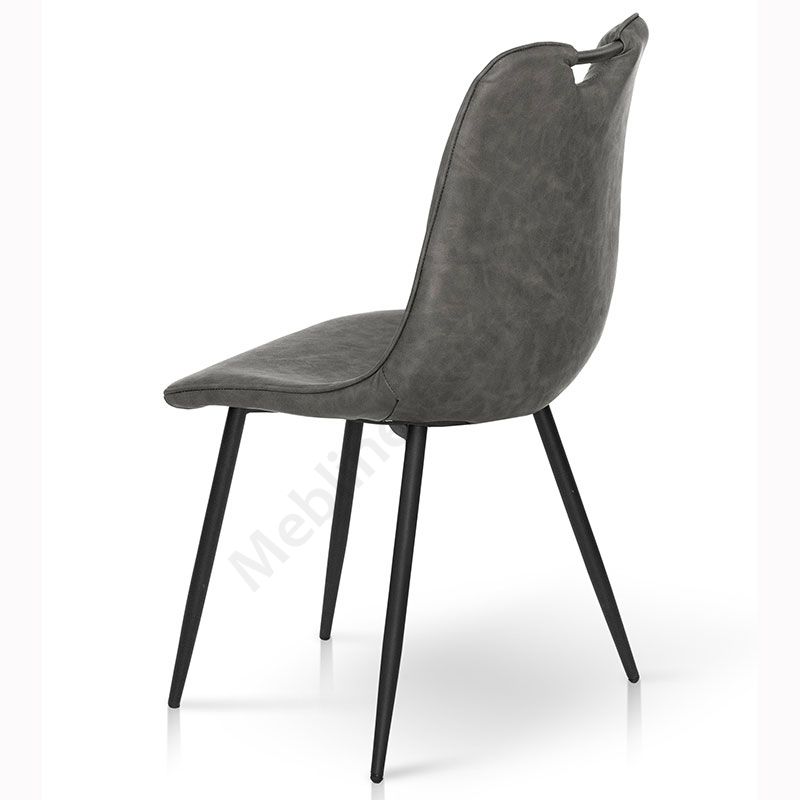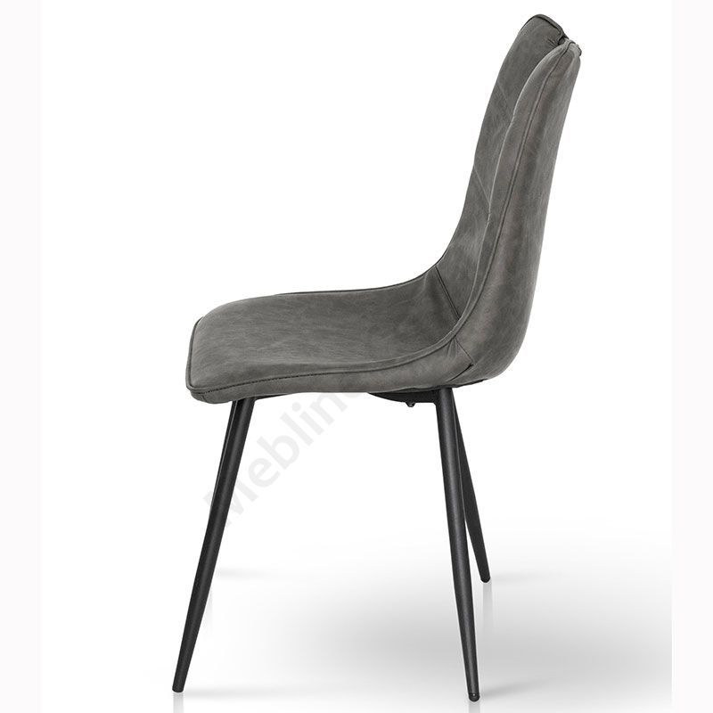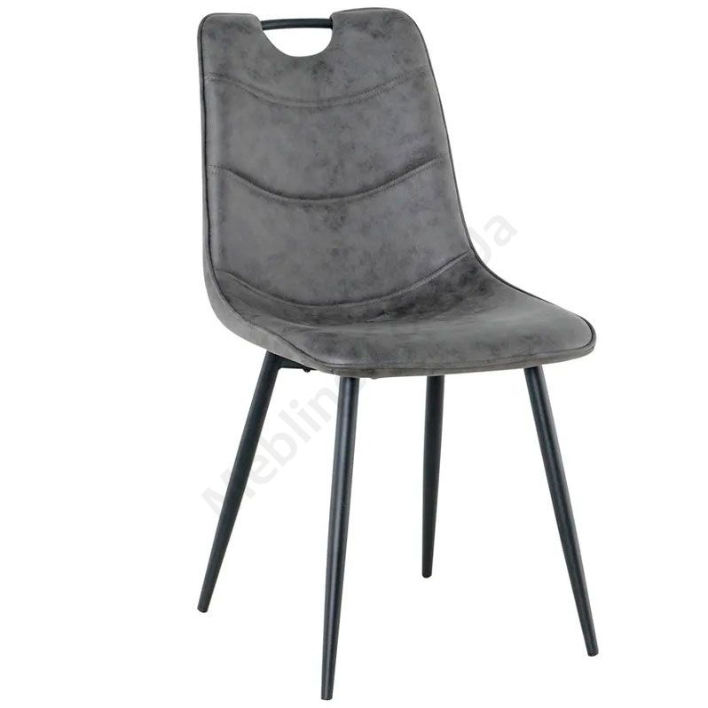 М’який стілець без підлокітників на металевих ніжках з оббивкою зі штучної шкіри.