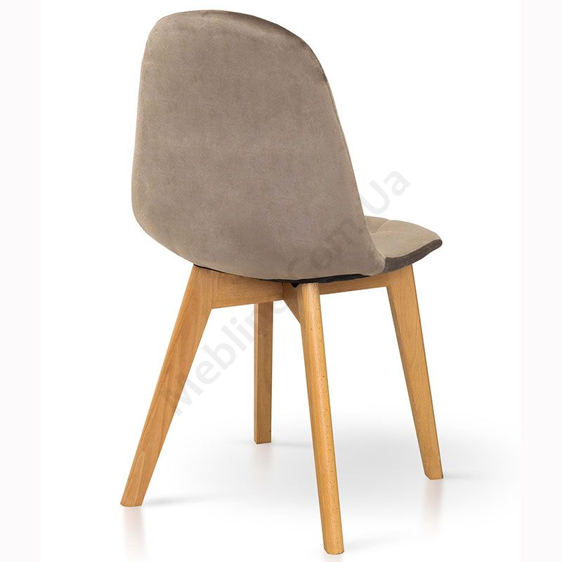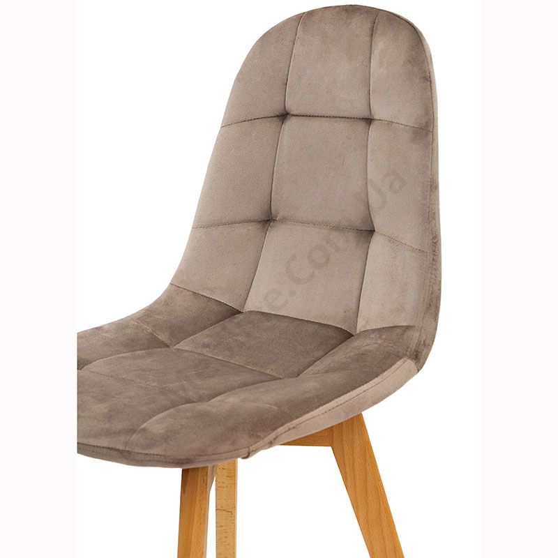 М’який стілець на дерев’яних ніжках з оббивкою пісочного кольору.