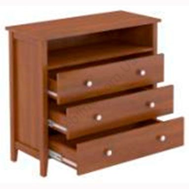 Комод з натурального дерева з трьома висувними шухлядами та полицею.