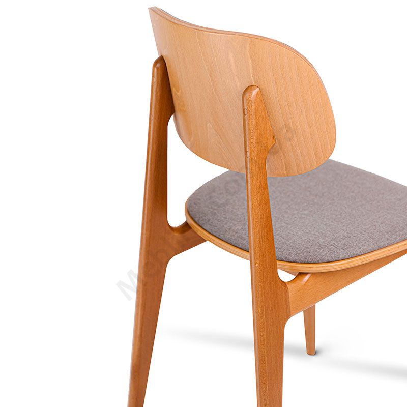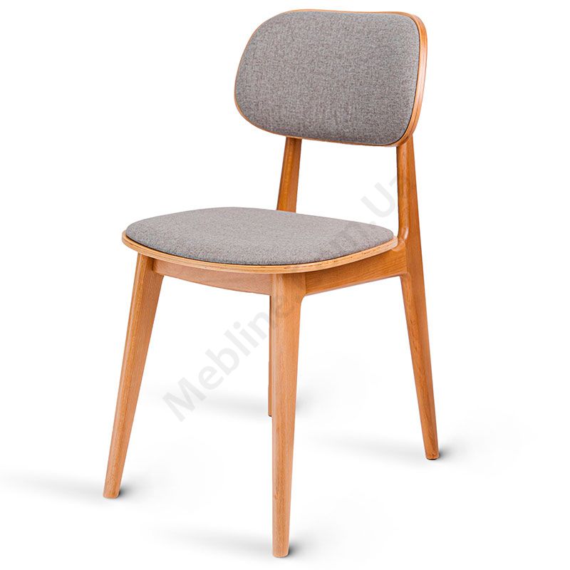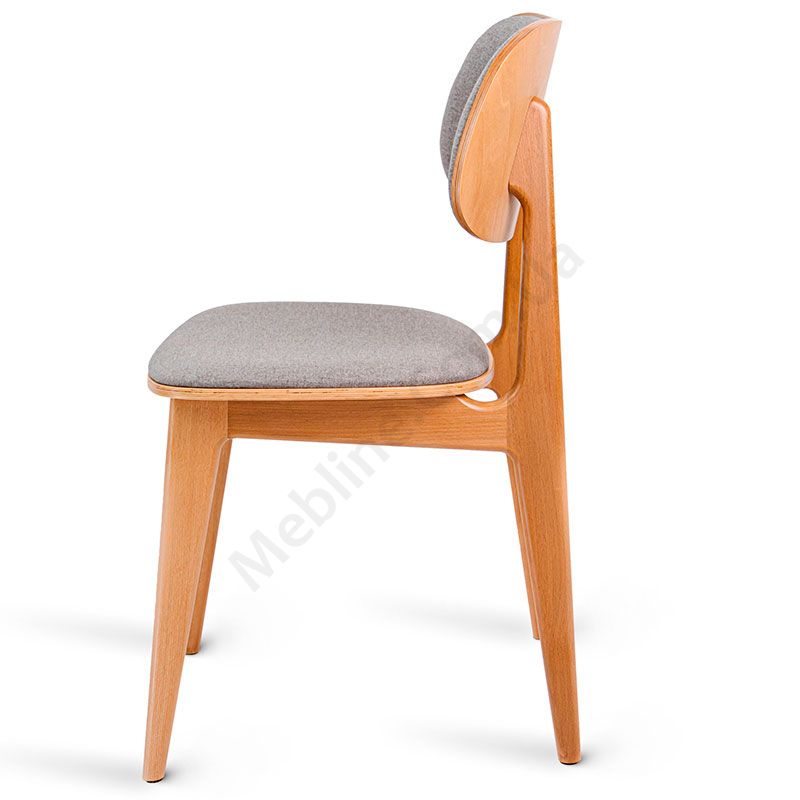 Обідній стілець із натурального дерева з м’якою оббивкою.