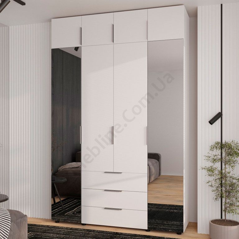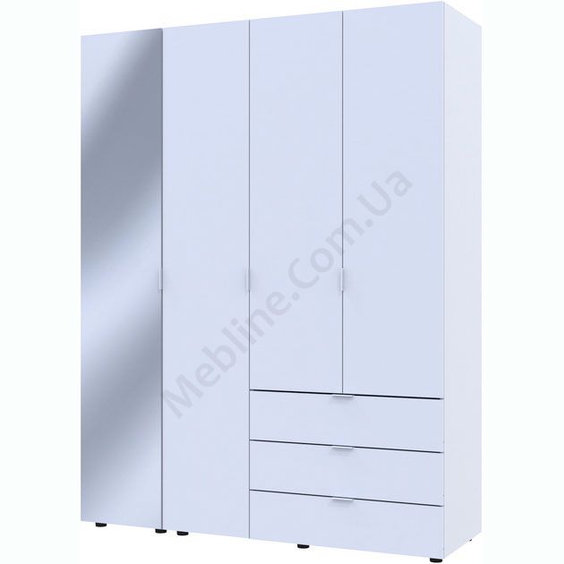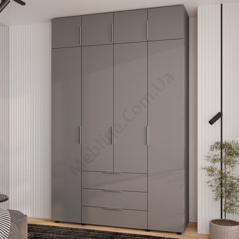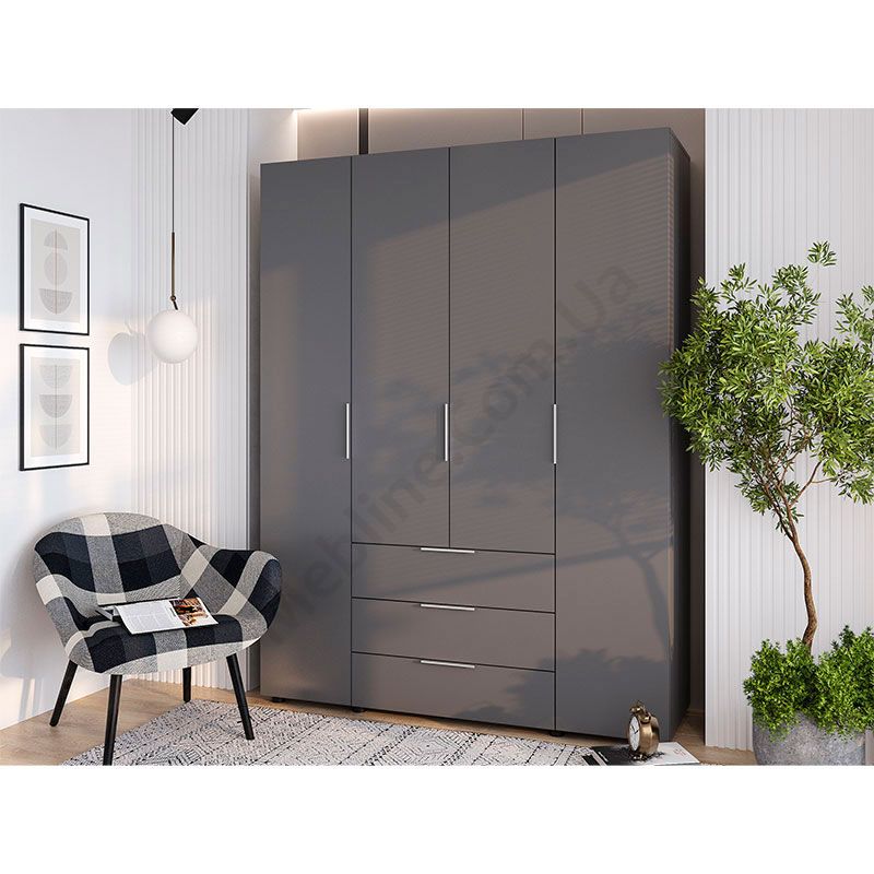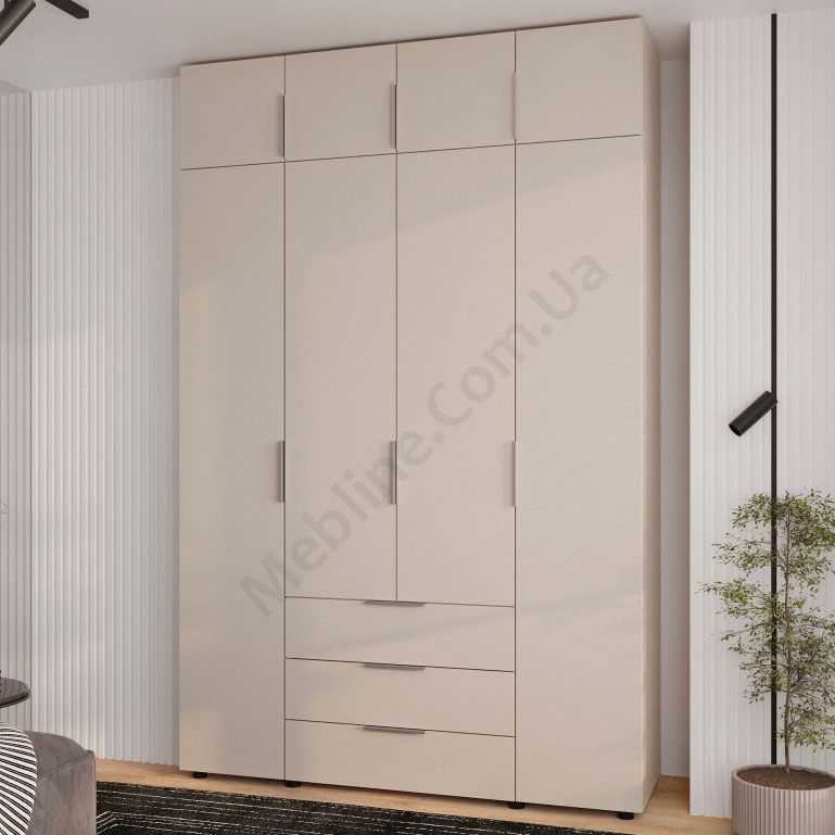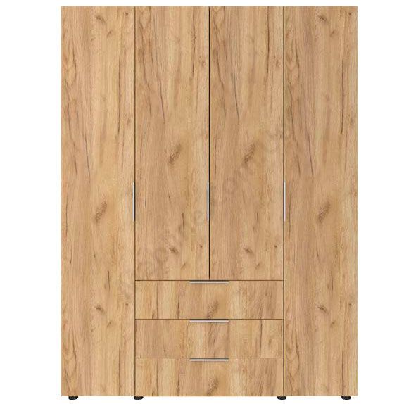 Чотиридверна шафа з трьома висувними шухлядами.