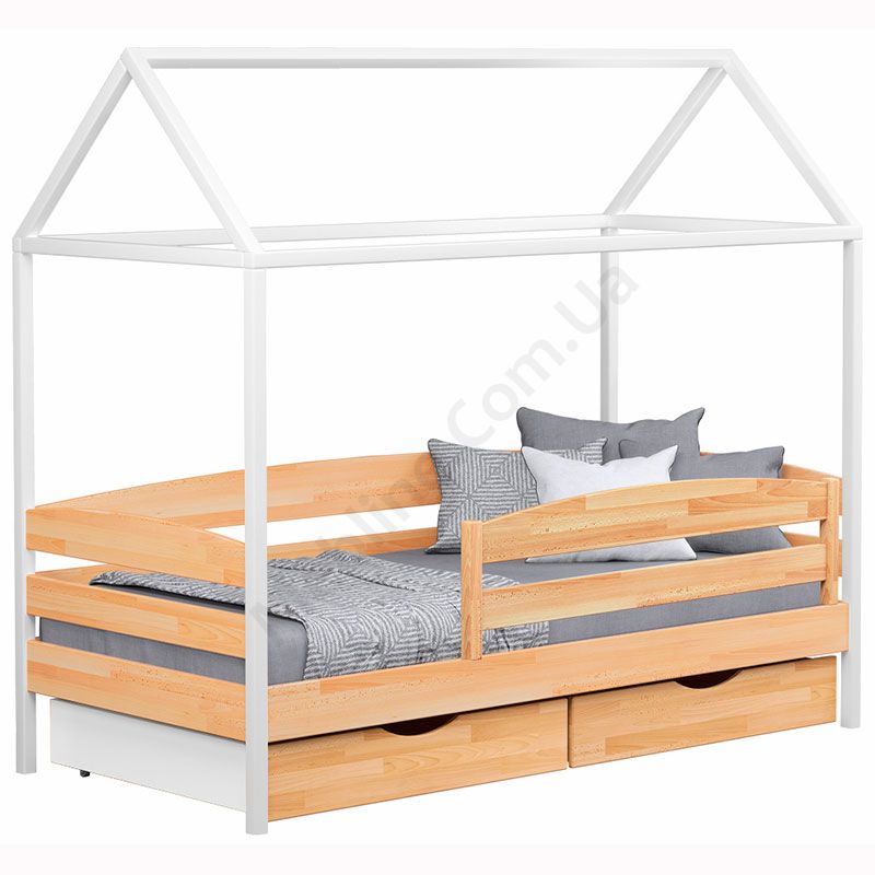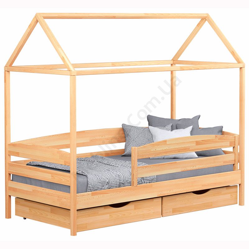 Дитяче дерев’яне ліжко у вигляді будиночка.