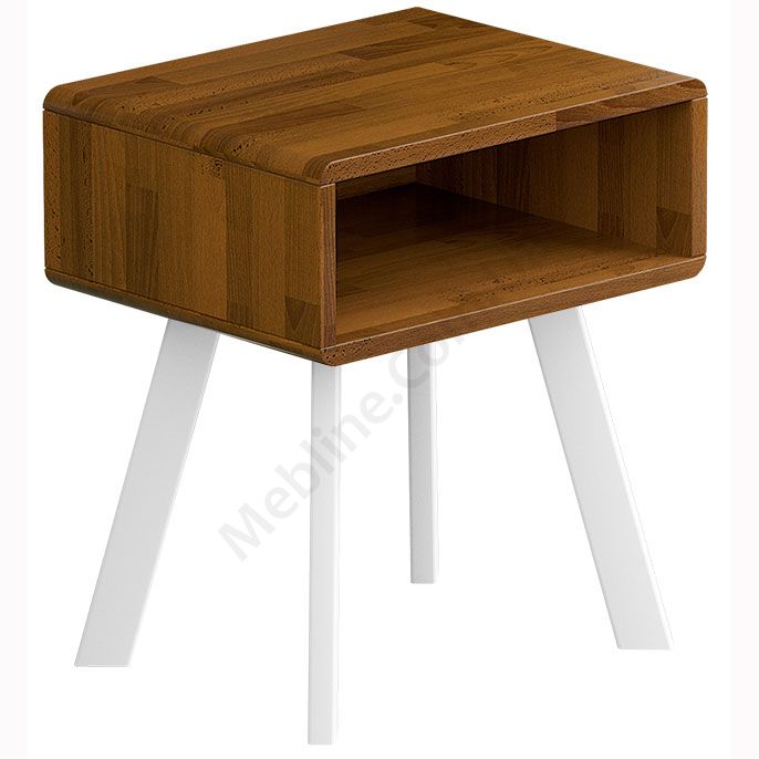 Дерев’яна приліжкова тумба на ніжках у мінімалістичному стилі.