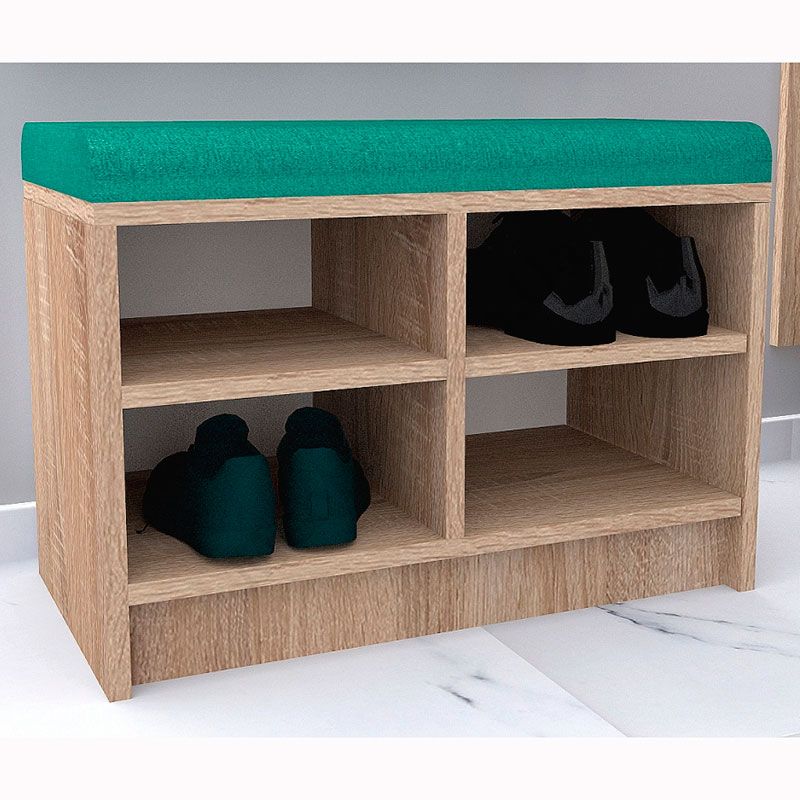 Тумба для взуття з м’яким сидінням та відкритими секціями.