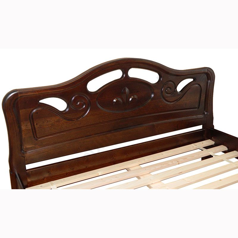 Ліжко на ніжках з натурального дерева з фігурним узголів’ям та узніжжям.