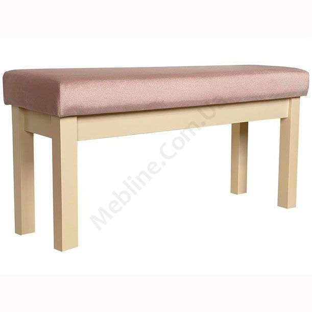 Банкетка на ніжках з натурального дерева з м’якою оббивкою сидіння.