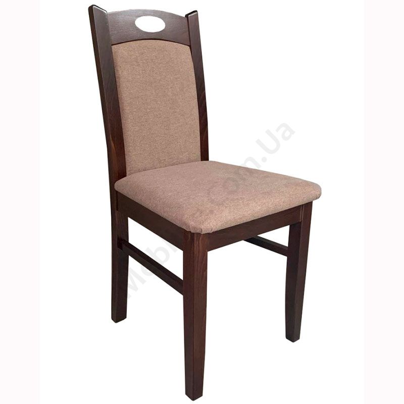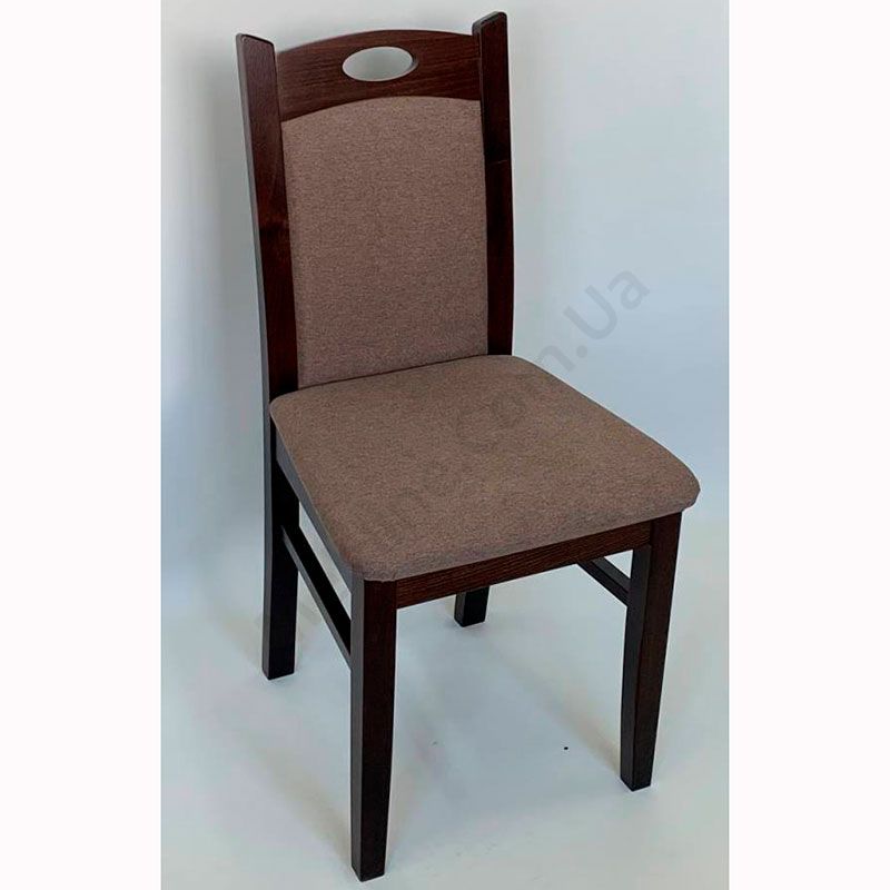 Стілець з натурального дерева з м’якою оббивкою сидіння та спинки.