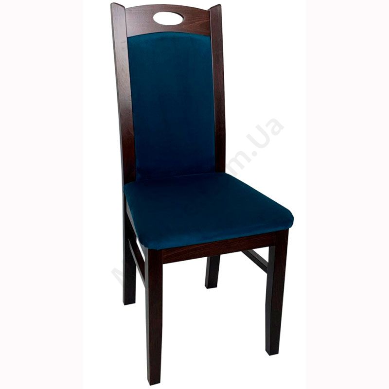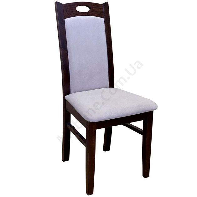 Стілець з натурального дерева з м’якою оббивкою сидіння та спинки.