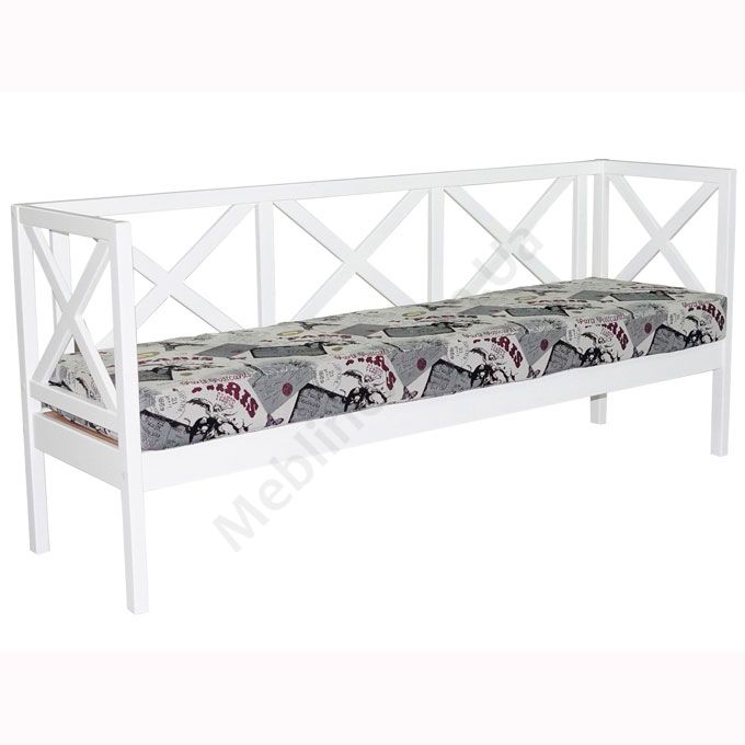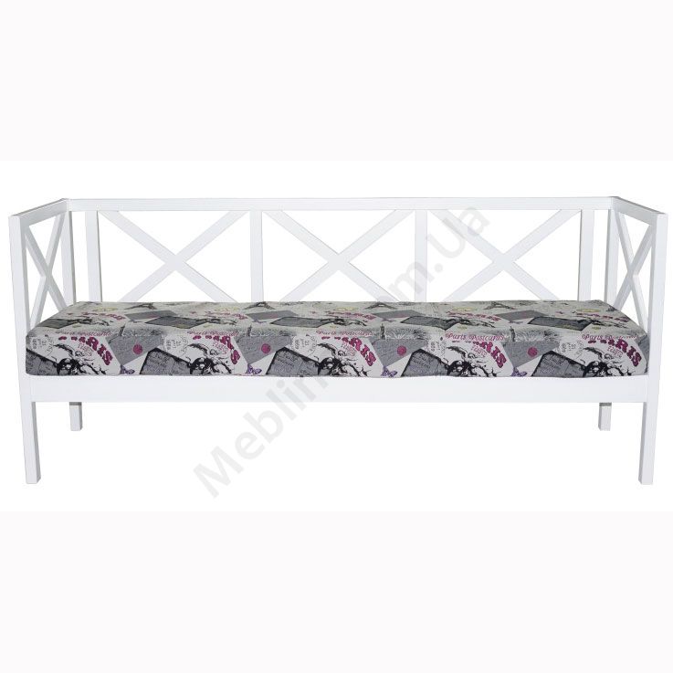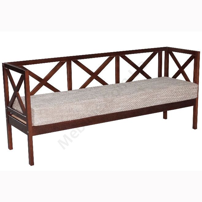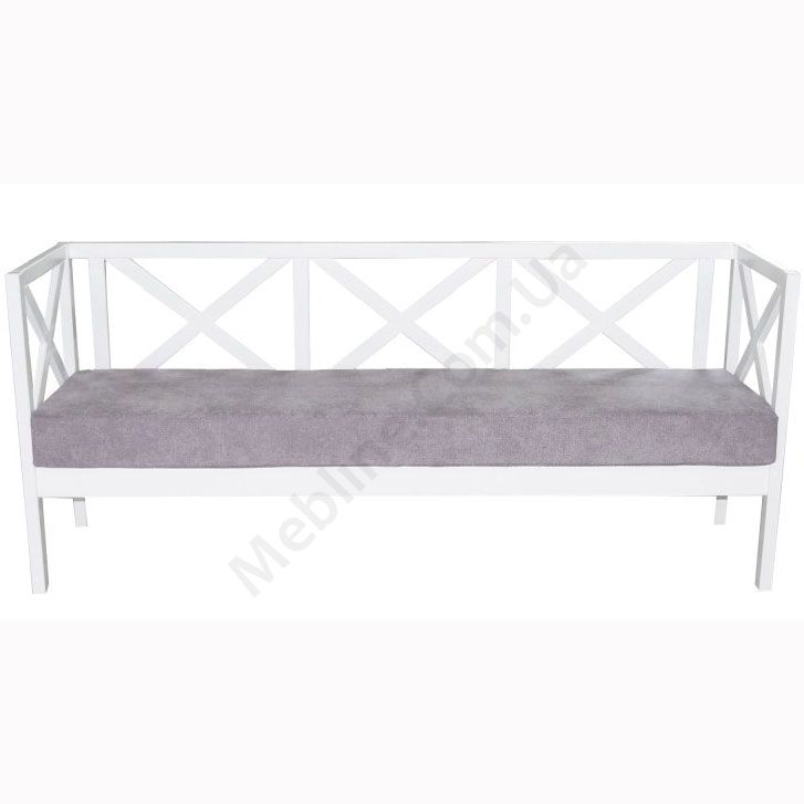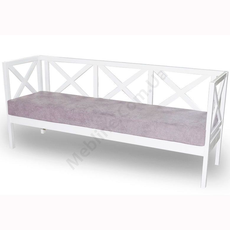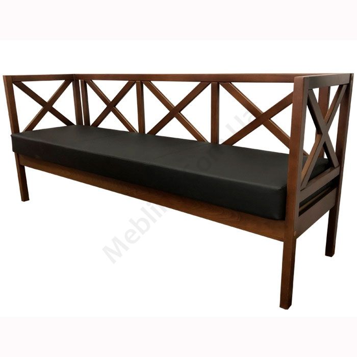 Нерозкладаний дерев’яний диванчик з м’яким сидінням.