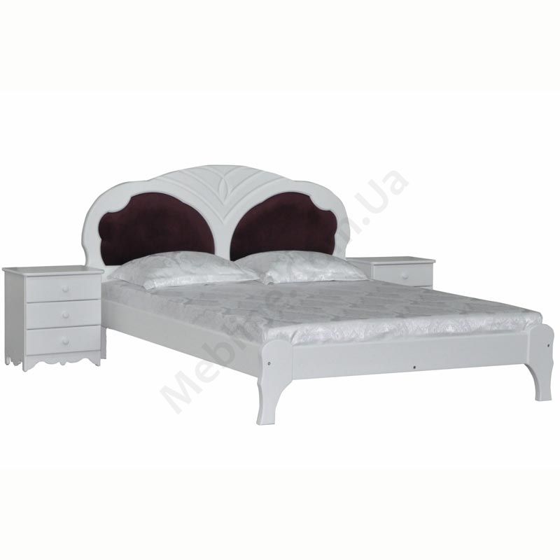 Двоспальне ліжко з натурального дерева з м’яким фігурним узголів’ям.