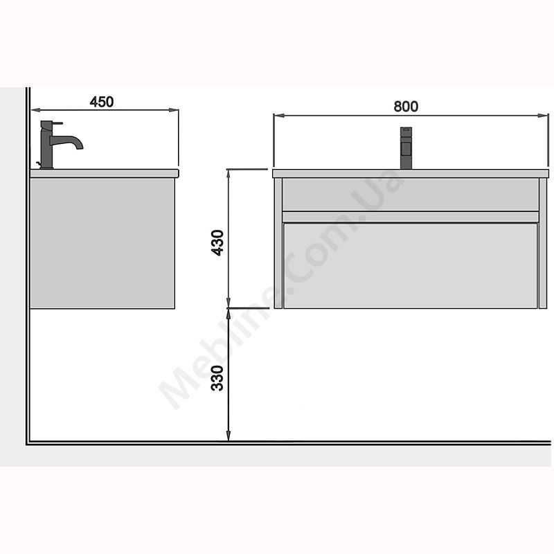 Підвісна тумба для ванної з умивальником та висувною шухлядою.