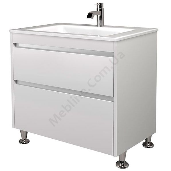 Тумба для ванної на ніжках з умивальником та висувними шухлядами.