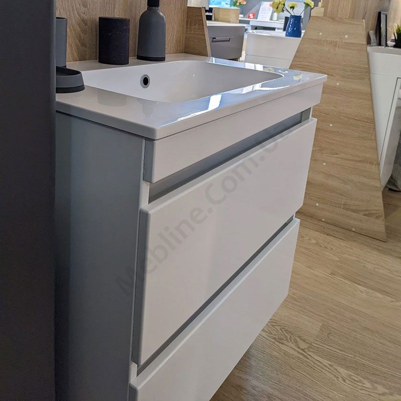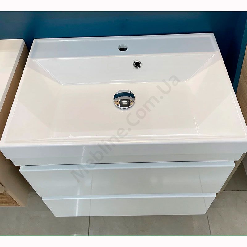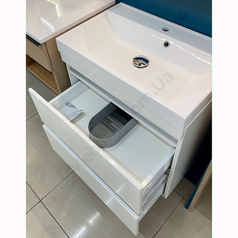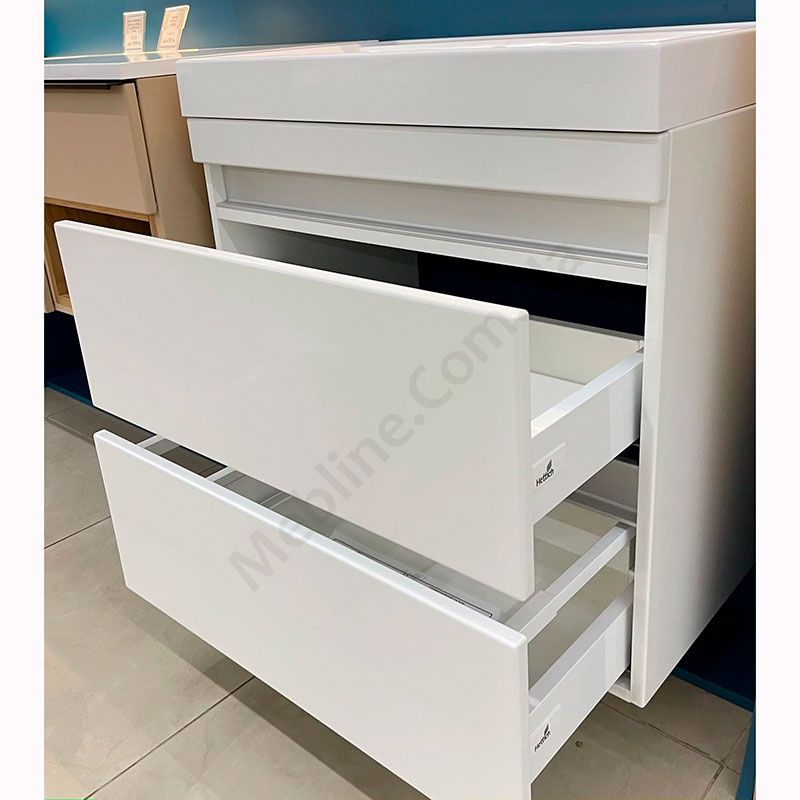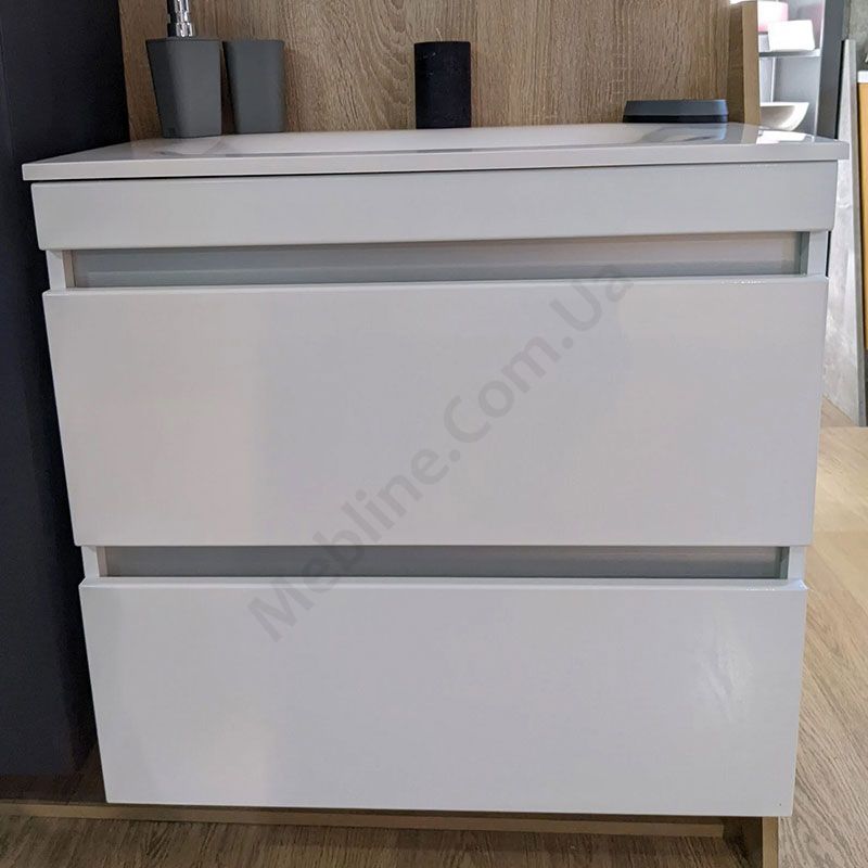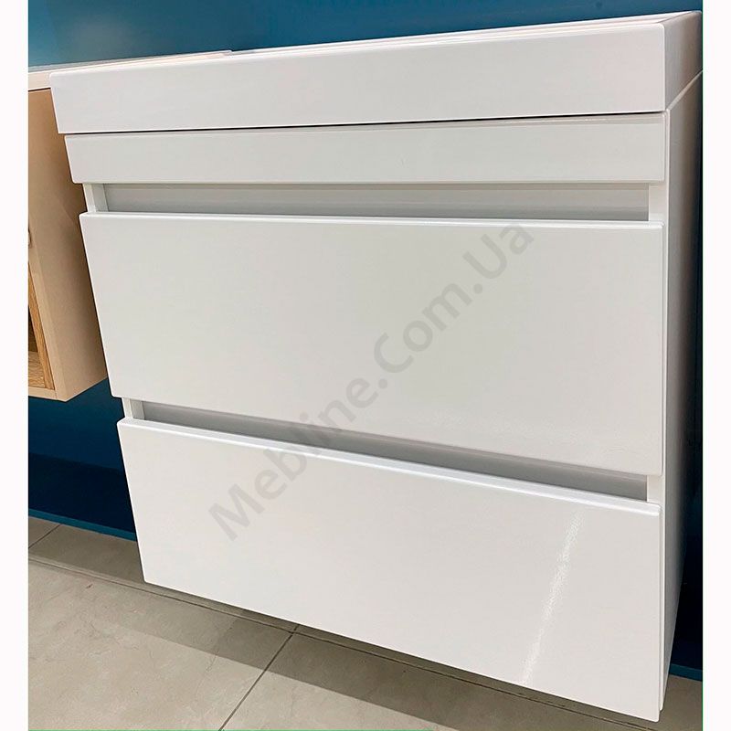 Навісна тумба для ванної з умивальником та висувними шухлядами.