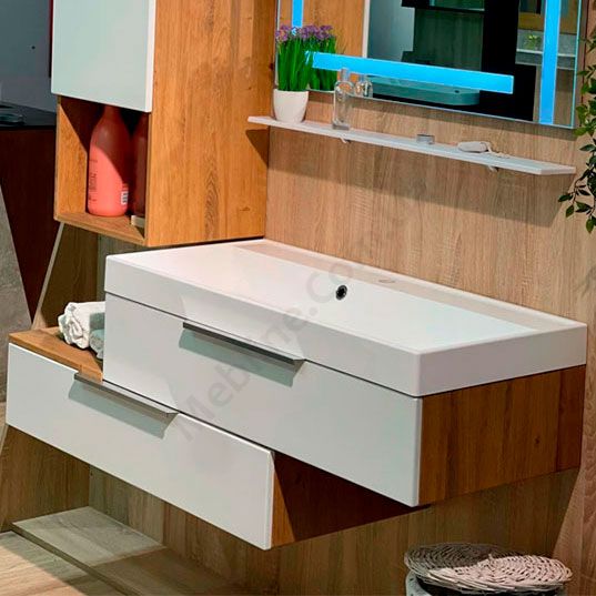 Навісна тумба для ванної з умивальником та висувними шухлядами.