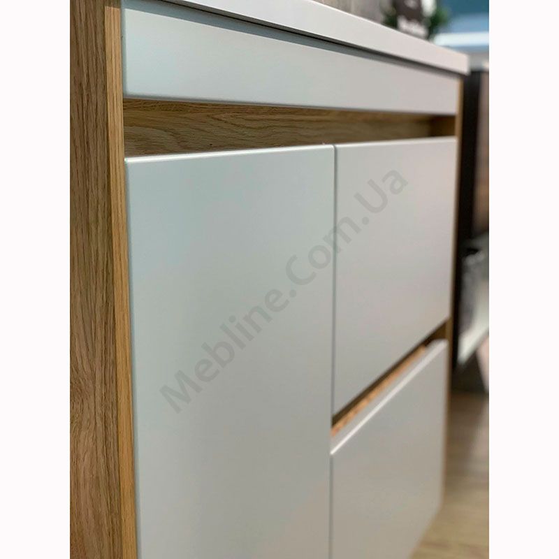 Навісна тумба для ванної з умивальником, дверцятами та висувними шухлядами.