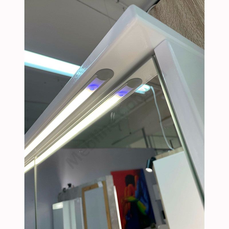 Навісна дзеркальна шафа для ванної кімнати з двома дверцятами та підсвічуванням.