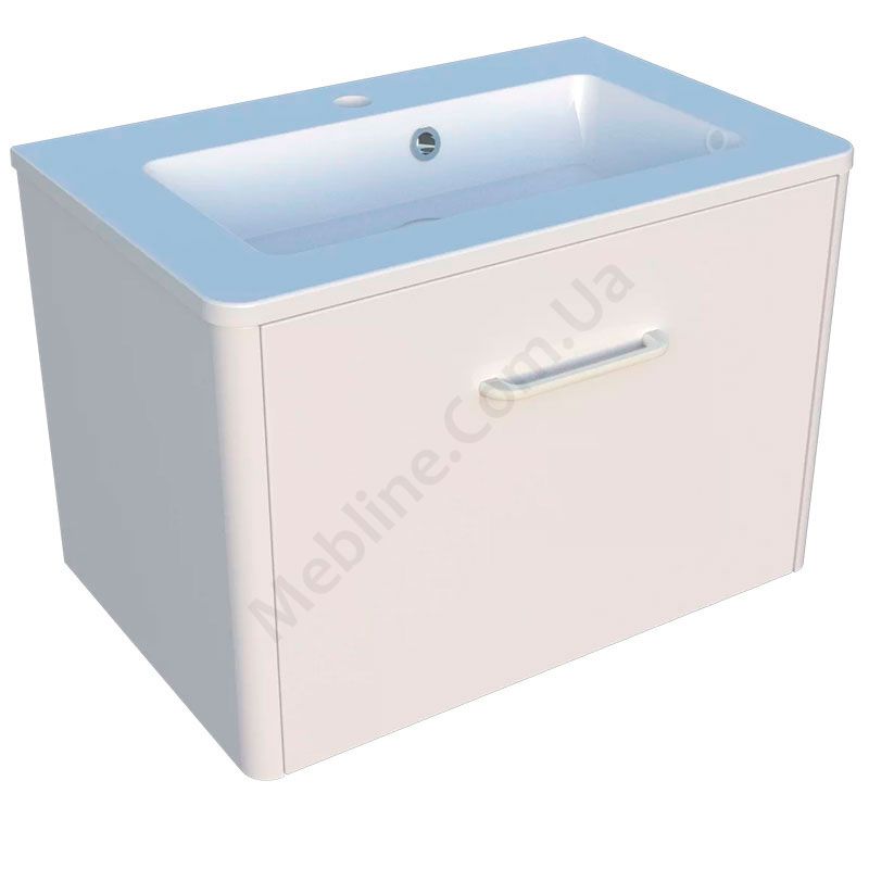 Навісна тумба для ванної з умивальником та висувною шухлядою.