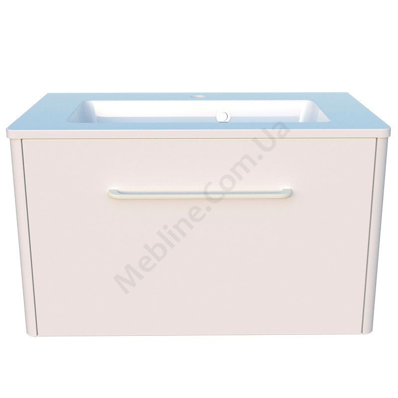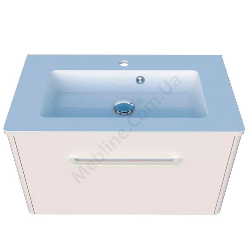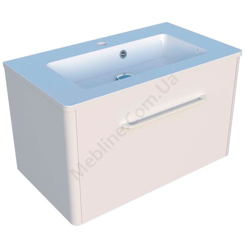 Навісна тумба для ванної з умивальником та висувною шухлядою.