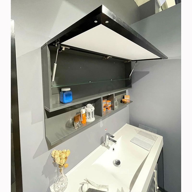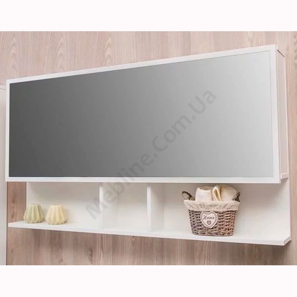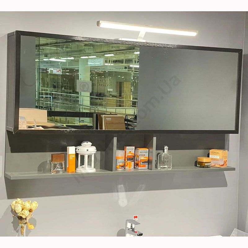 Навісна дзеркальна шафа для ванної кімнати з відкритими поличками.