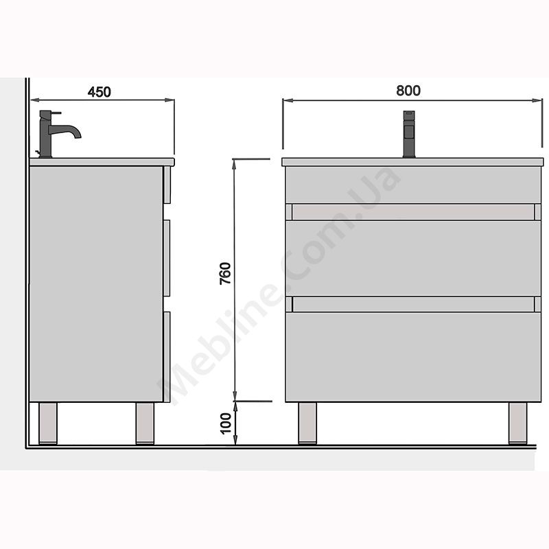 Тумба для ванної з умивальником та висувними шухлядами.