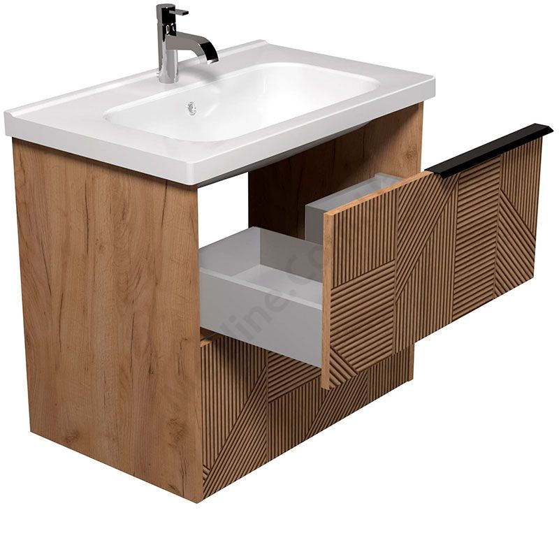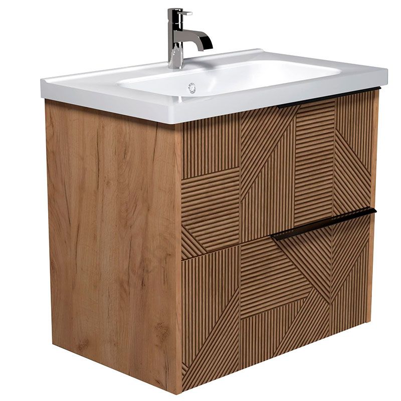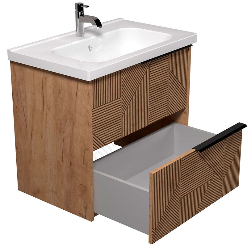 Підвісна тумба для ванної з умивальником та висувними шухлядами.