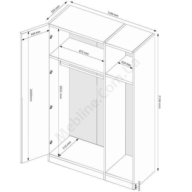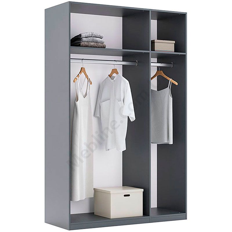 - За дверцятами по штанзі для одягу та верхній полиці.