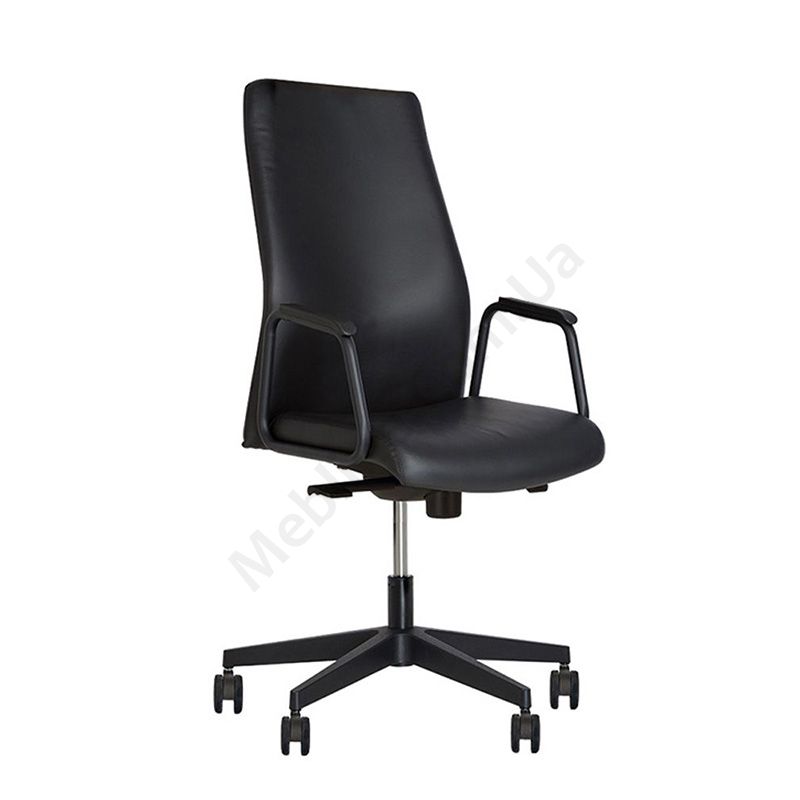 Крісло для керівника в лаконічному стилі, пластиковим нерегульованими підлокітниками, фіксацією у 3 положеннях, на пластиковій основі.