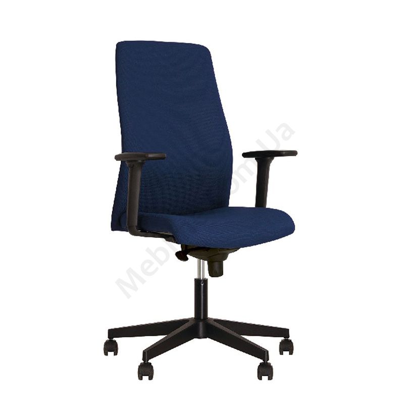 Крісло для керівника в лаконічному стилі, пластиковим регульованими підлокітниками, синхромеханізмом, фіксацією в 5 положеннях, на пластиковій основі.