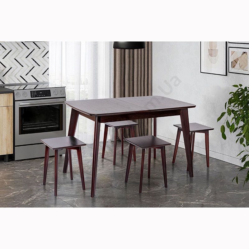 Прямокутний розкладний дерев’яний стіл на ніжках.