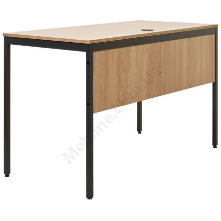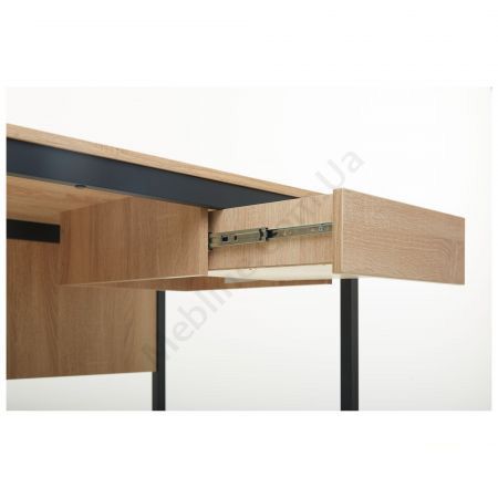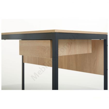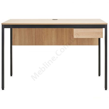 Простий письмовий стіл на металевих ніжках з шухлядою.