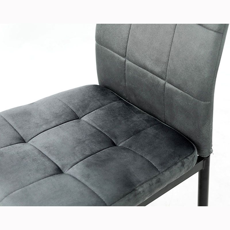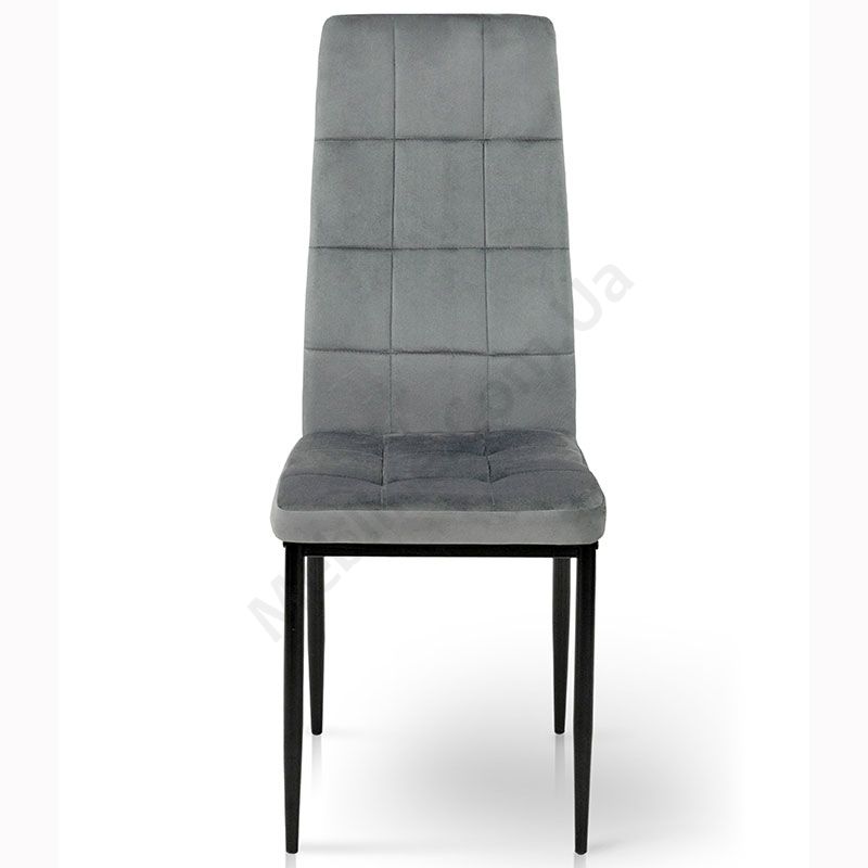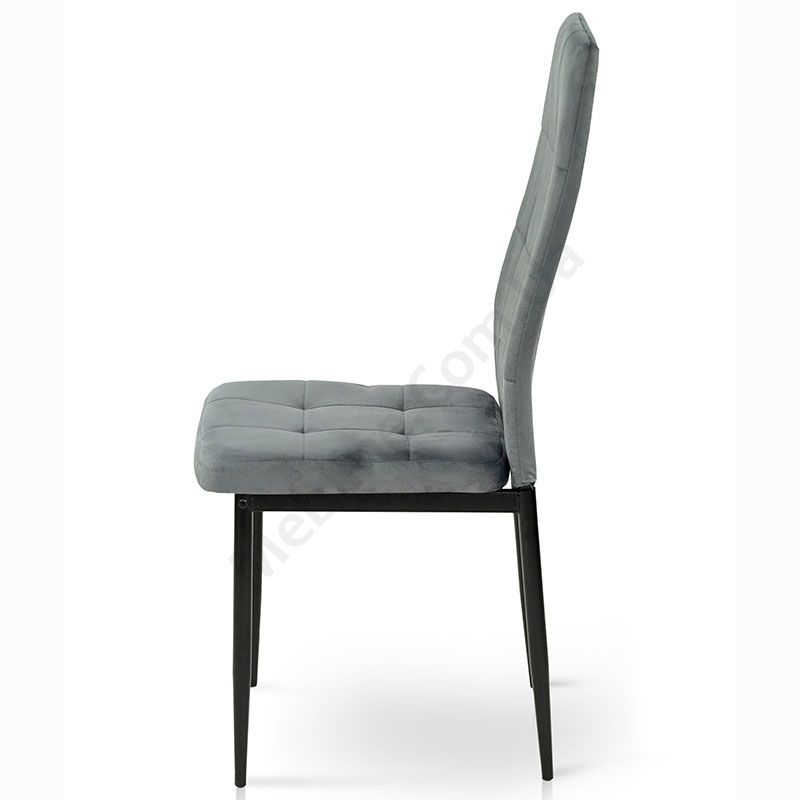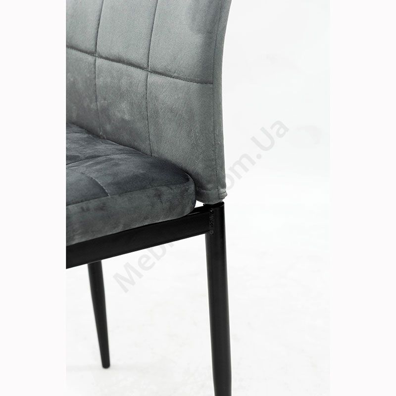 М’який стілець без підлокітників на металевих ніжках з оббивкою із велюру.