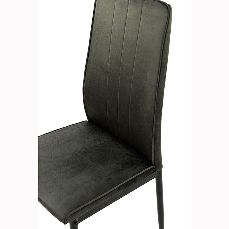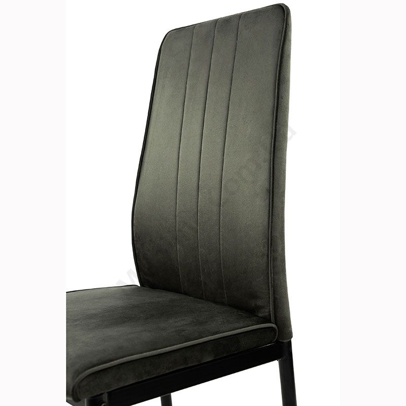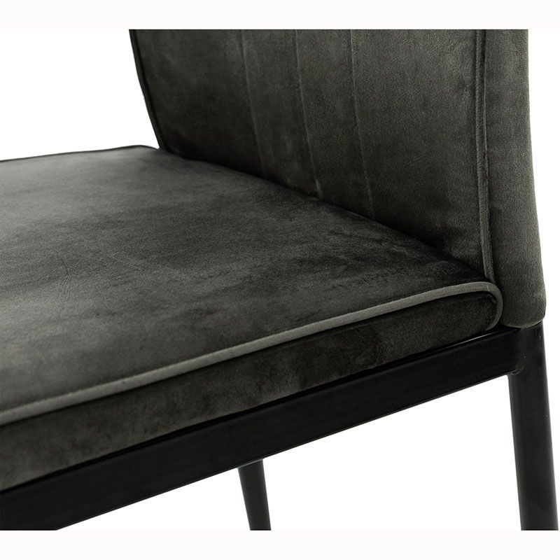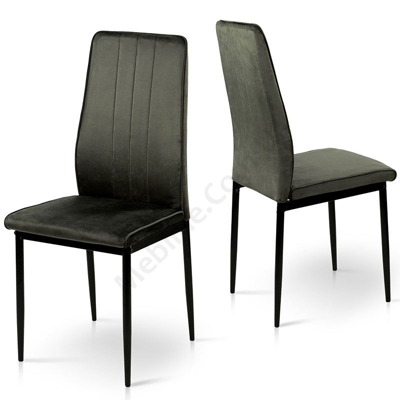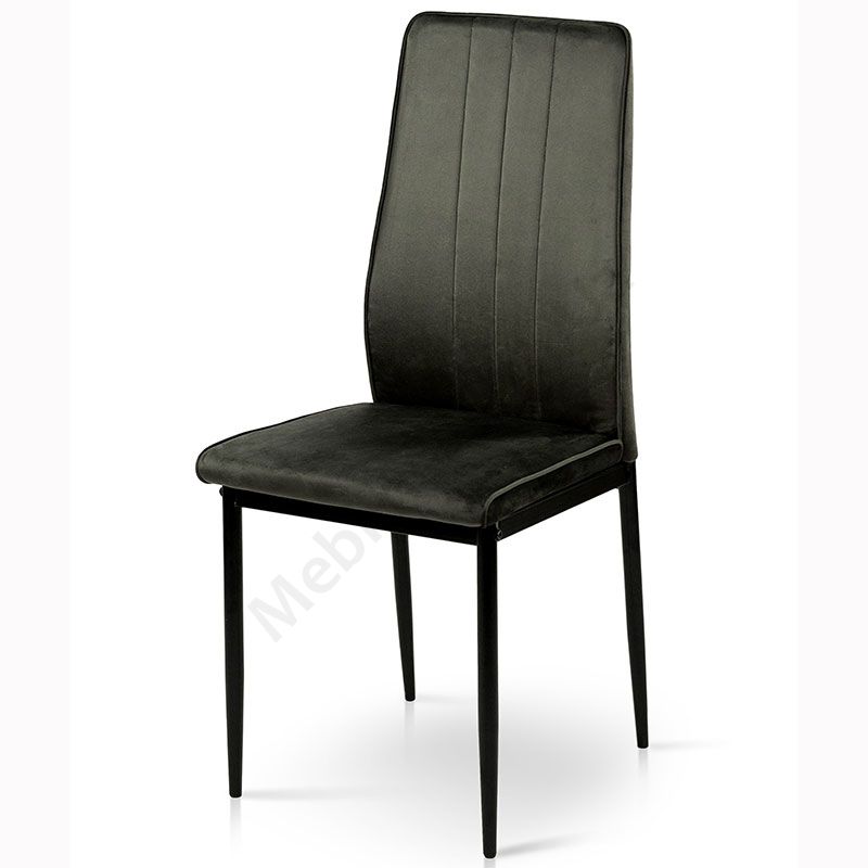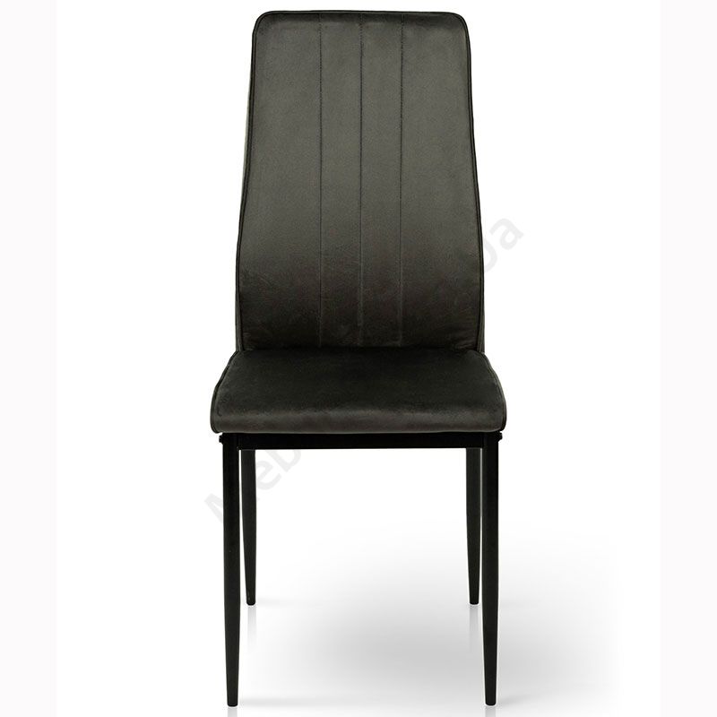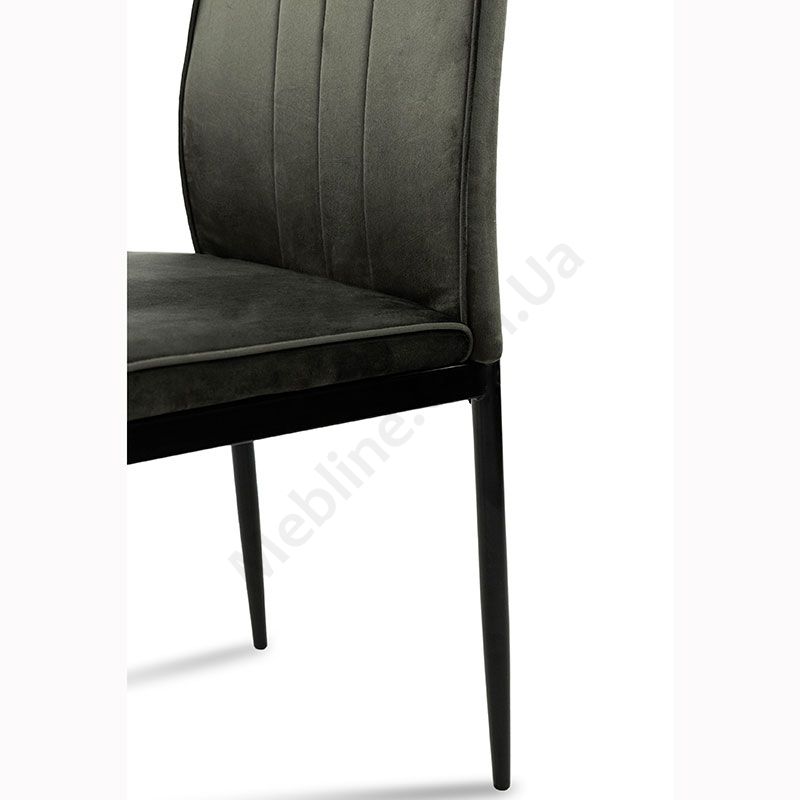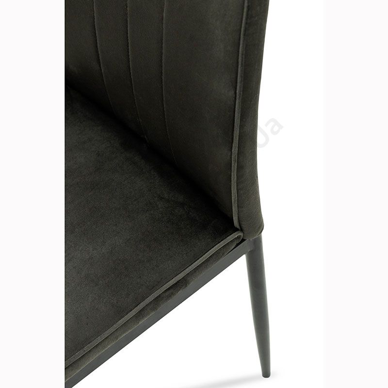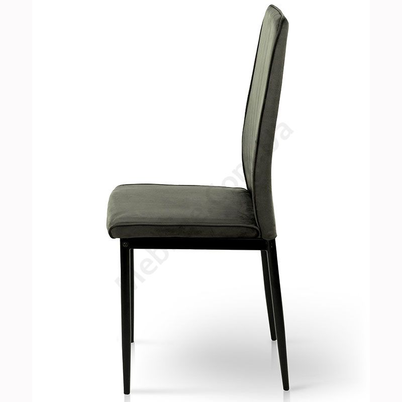 М’який стілець без підлокітників на металевих ніжках з велюровою оббивкою.