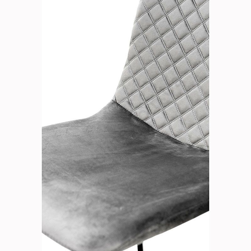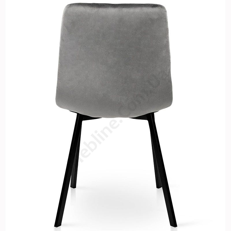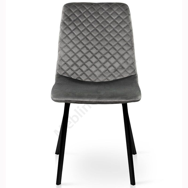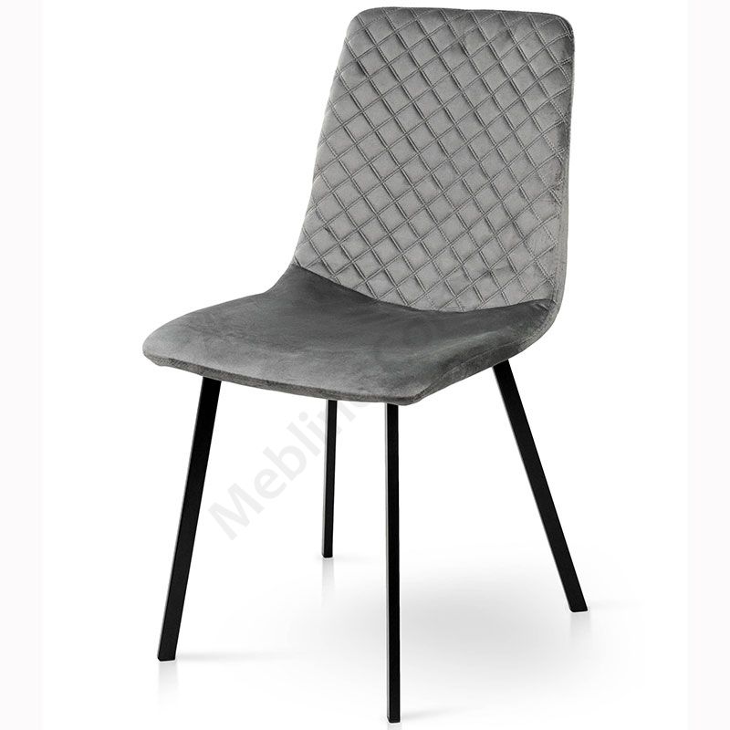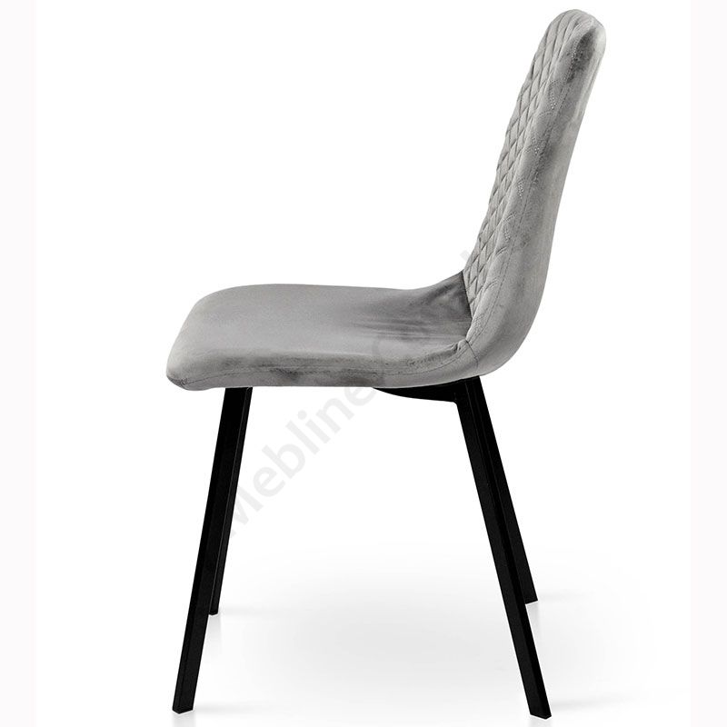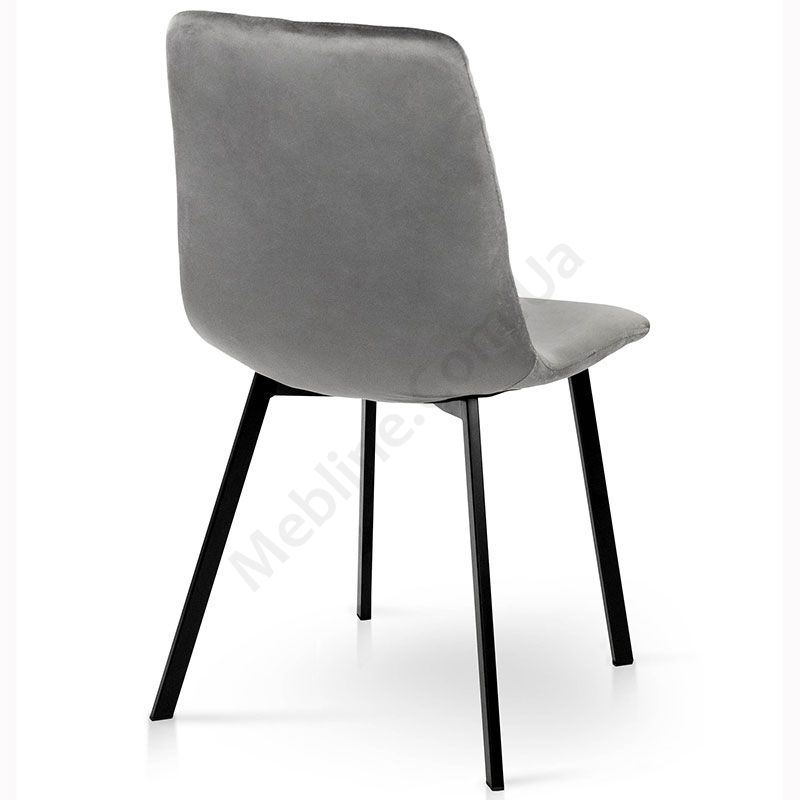 М’який стілець без підлокітників на металевих ніжках з велюровою оббивкою.