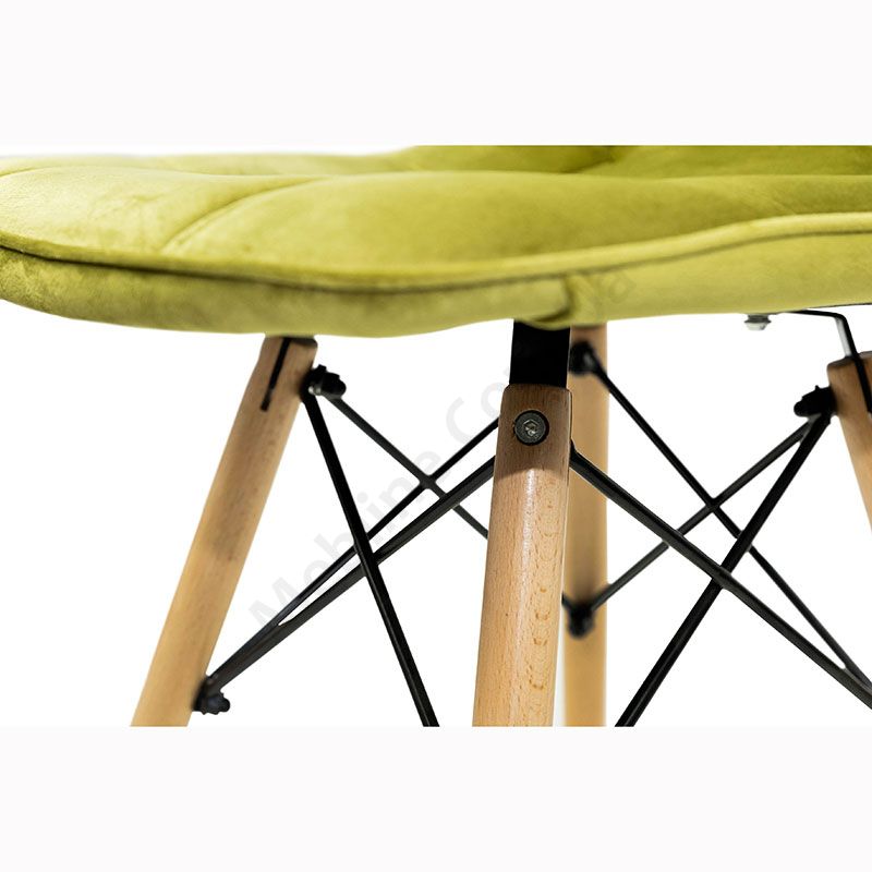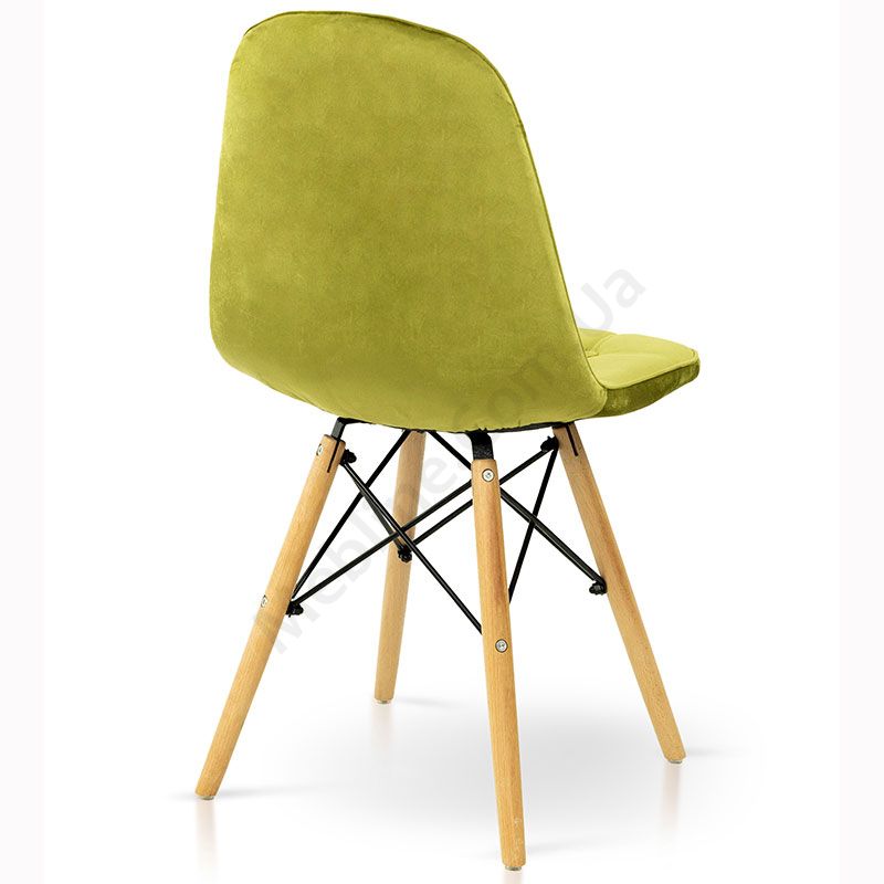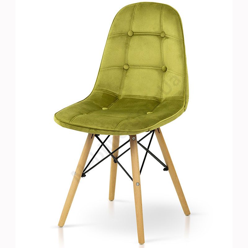 М’який стілець на дерев’яних ніжках з оббивкою оливкового кольору.
